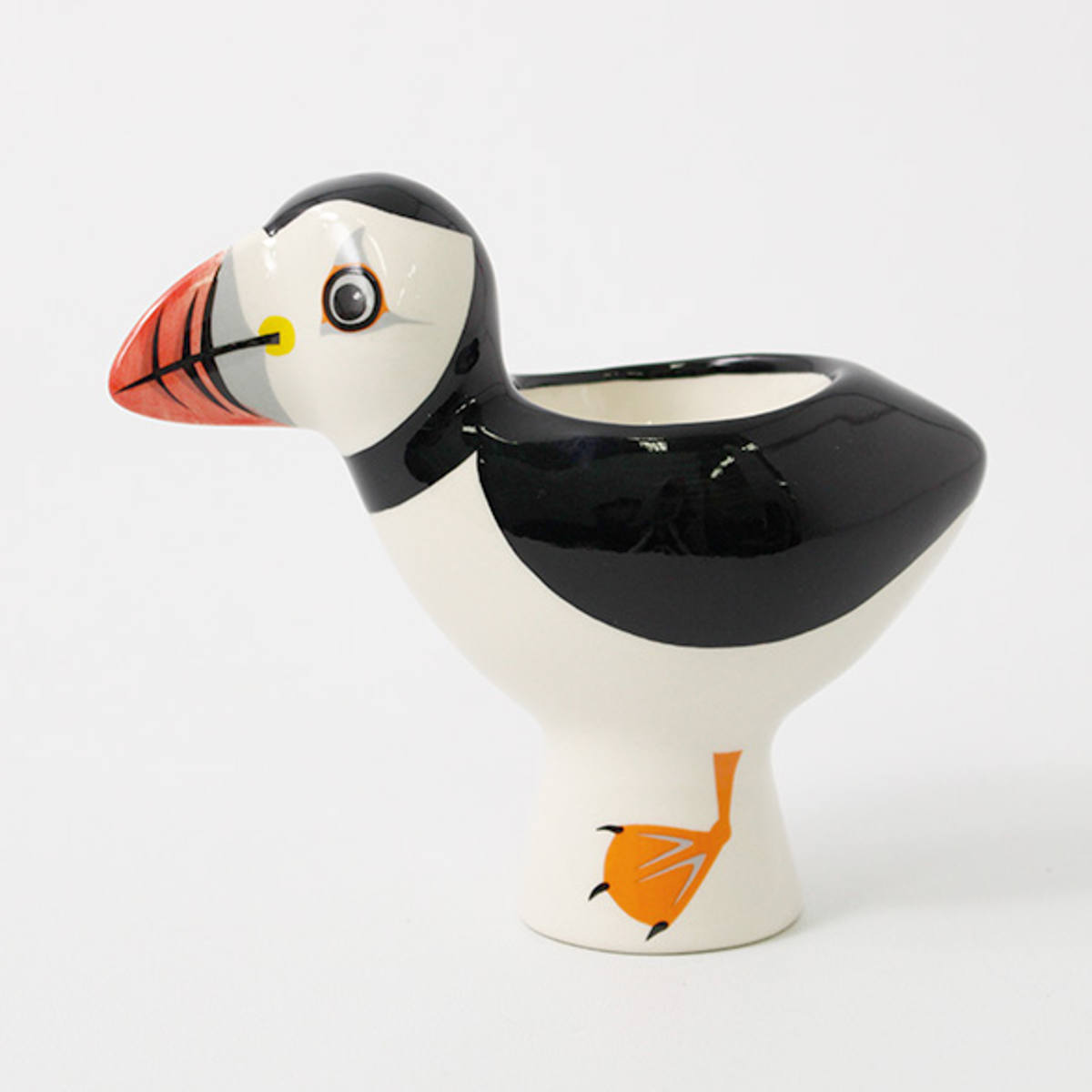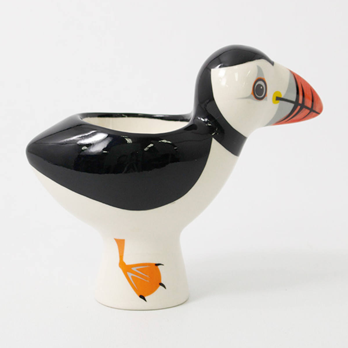 ゆで卵を食べる際にお使いいただくエッグスタンドです。食卓が楽しくなるバードモチーフのかわいいデザインで、カラフルな海鳥であるツノメドリをモチーフにしています。この可愛らしいツノメドリは絶滅危惧種です。保護活動のため、当商品の売り上げの一部がRSPB(英国王立鳥類保護協会)の活動資金に充てられています。