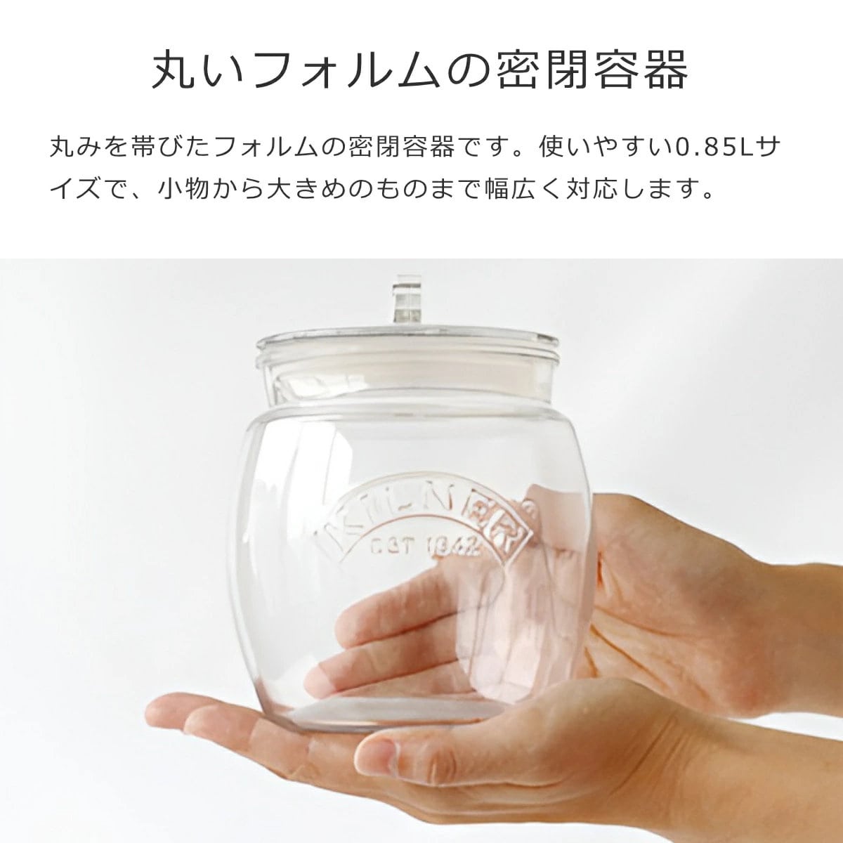 なめらかな丸みを帯びたフォルムの密閉容器です。使いやすい0.85Lサイズで、小物から大きめのものまで幅広く対応します。