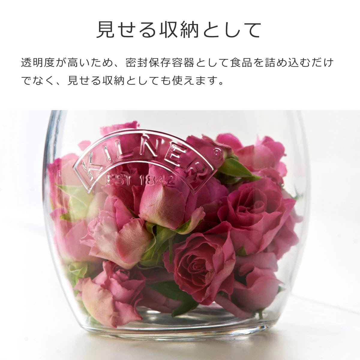 透明度が高いため、密封保存容器として食品を詰め込むだけでなく、見せる収納としても使えます。