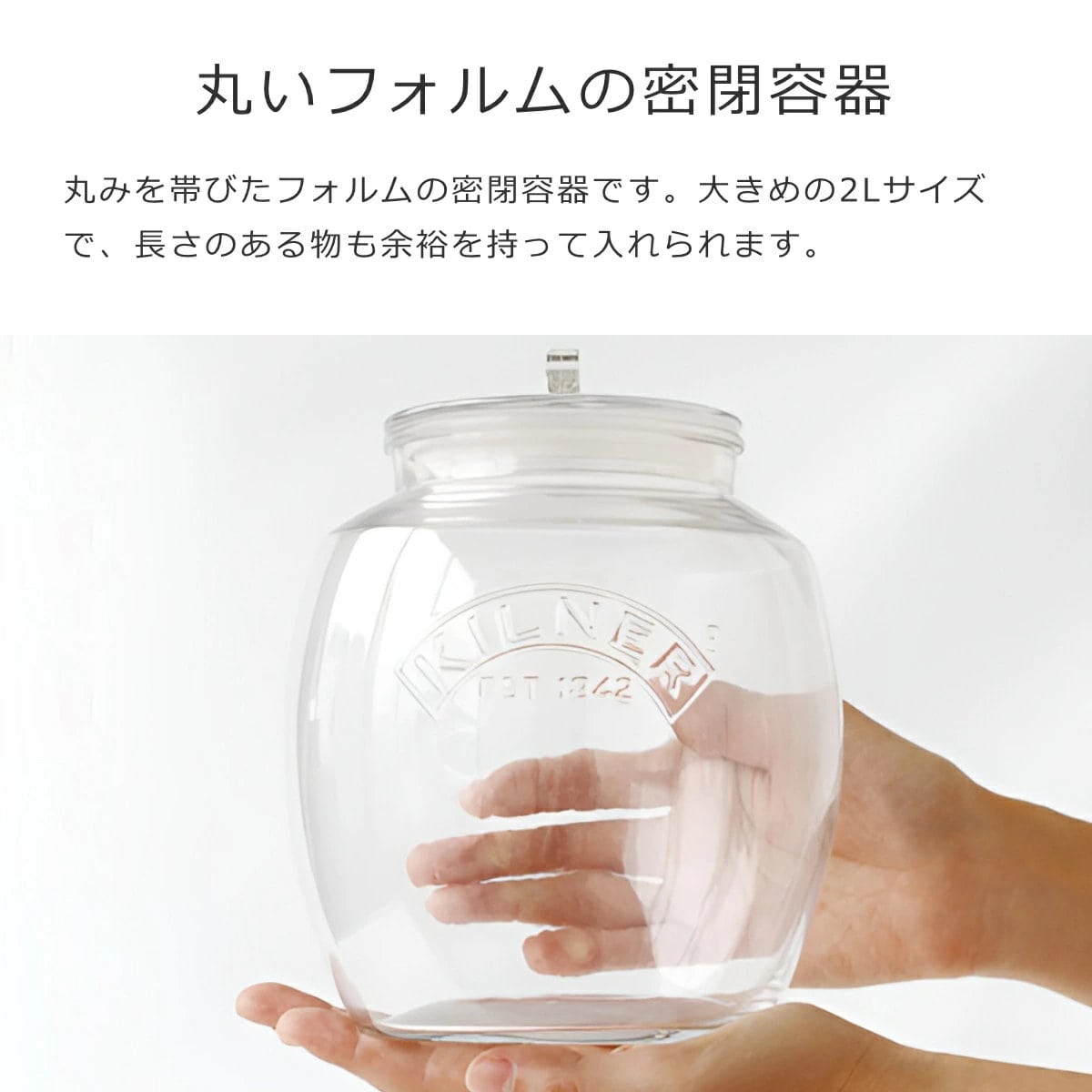 なめらかな丸みを帯びたフォルムの密閉容器です。大きめの2Lサイズで、長さのある物も余裕を持って入れられます。
