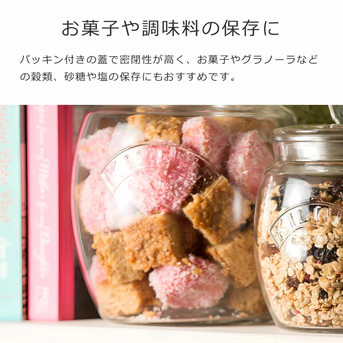パッキン付きの蓋で密閉性が高く、気密性を保ちます。お菓子やグラノーラなどの穀類、砂糖や塩の保存にもおすすめです。
