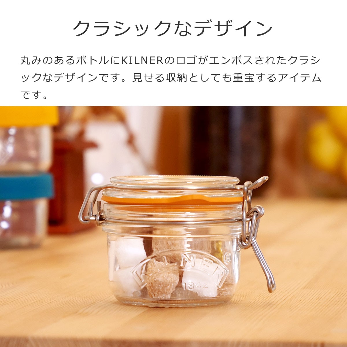 丸みのあるボトルにKILNERのロゴがエンボスされたクラシックなデザインです。彩りのある食材を入れて並べれば見栄えもよく、キッチンや食卓を飾ってくれるおしゃれアイテムに。