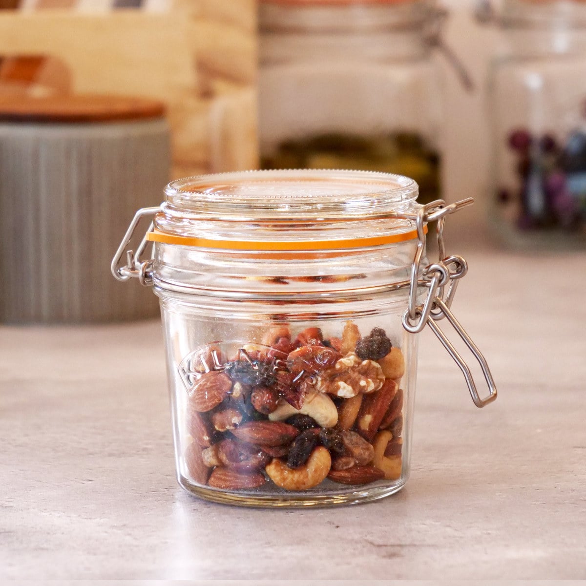 KILNERの保存瓶は、食材や用途に合わせて選べる豊富なサイズ展開です。単体での使用はもちろん、種類別で複数使いすれば、キッチンが整って統一した空間が生まれます。