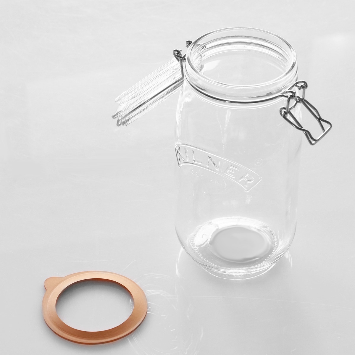 丸みのあるボトルにKILNERのロゴがエンボスされたクラシックなデザインです。彩りのある食材を入れて並べれば見栄えもよく、キッチンや食卓を飾ってくれるおしゃれアイテムに。