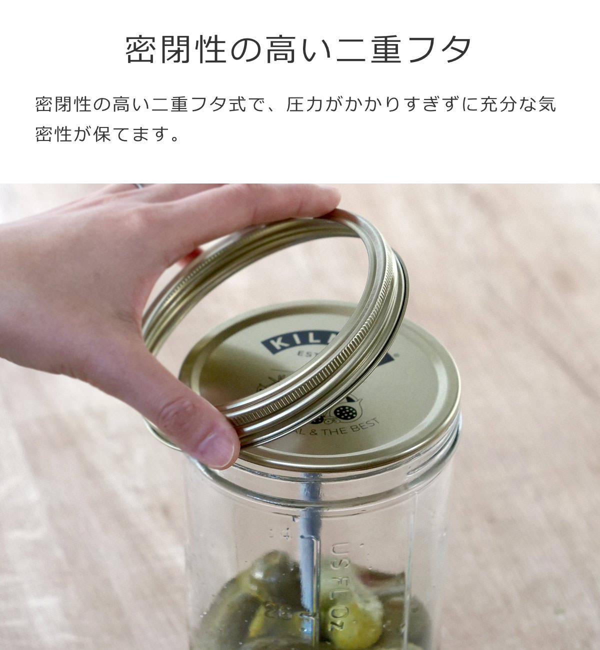 ガラスジャー本体とシリコンリフターは食洗機対応で、お手入れが簡単です。フタとスクリューバンドは手洗い後、すぐに乾かしていただくくと錆びるのを防いで長くお使いいただけます。