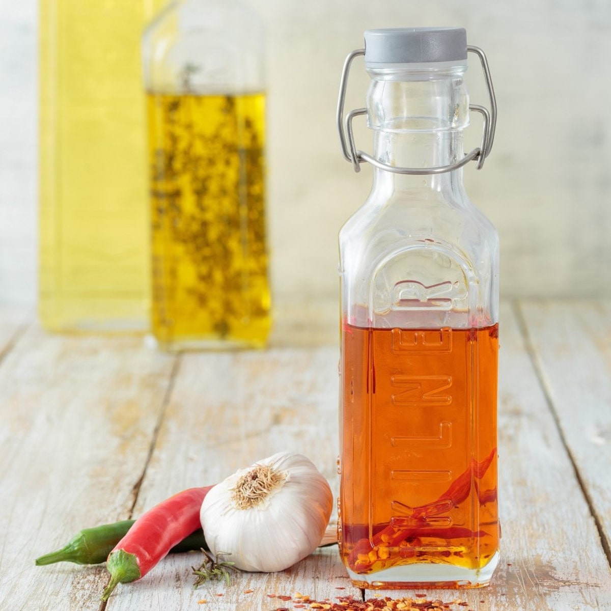 ボトルはソーダガラス製で、色や匂いが移りにくく、塩分や酸に強い素材です。色汚れや匂い移りの心配もなく、油汚れも簡単に落とせるので、長く衛生的に使用できます。オイルやビネガー、シロップなど、酸化を防ぎたい物の保存に最適です。