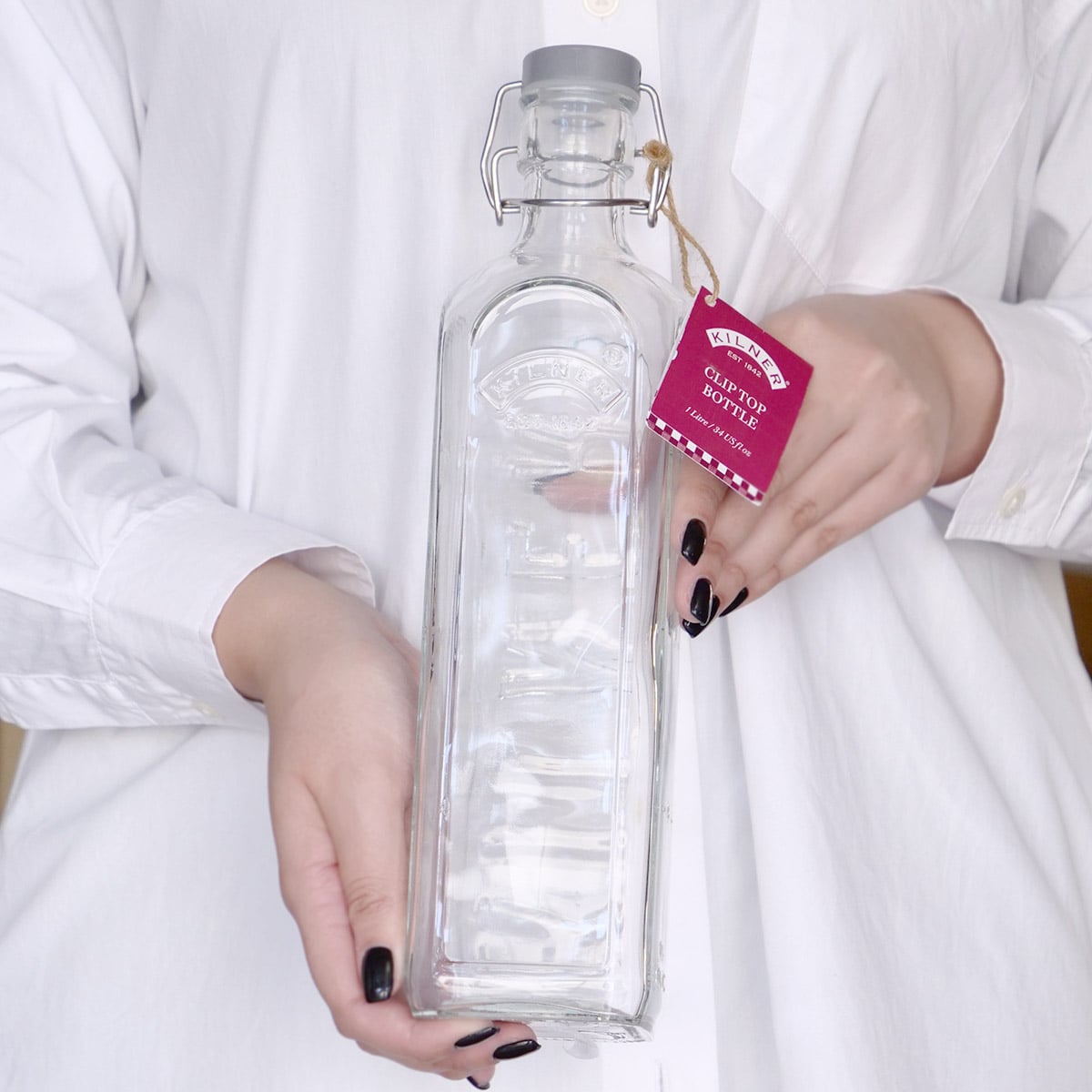 どこかレトロな形状のボトルには、KILNERのロゴが立体的に刻印されています。伝統的かつモダンスタイルの美しいデザインをお楽しみいただけます。透明な見た目から、中に入れたものが一目でわかるので保存容器として使いやすく、見せる収納としても重宝するアイテムです。