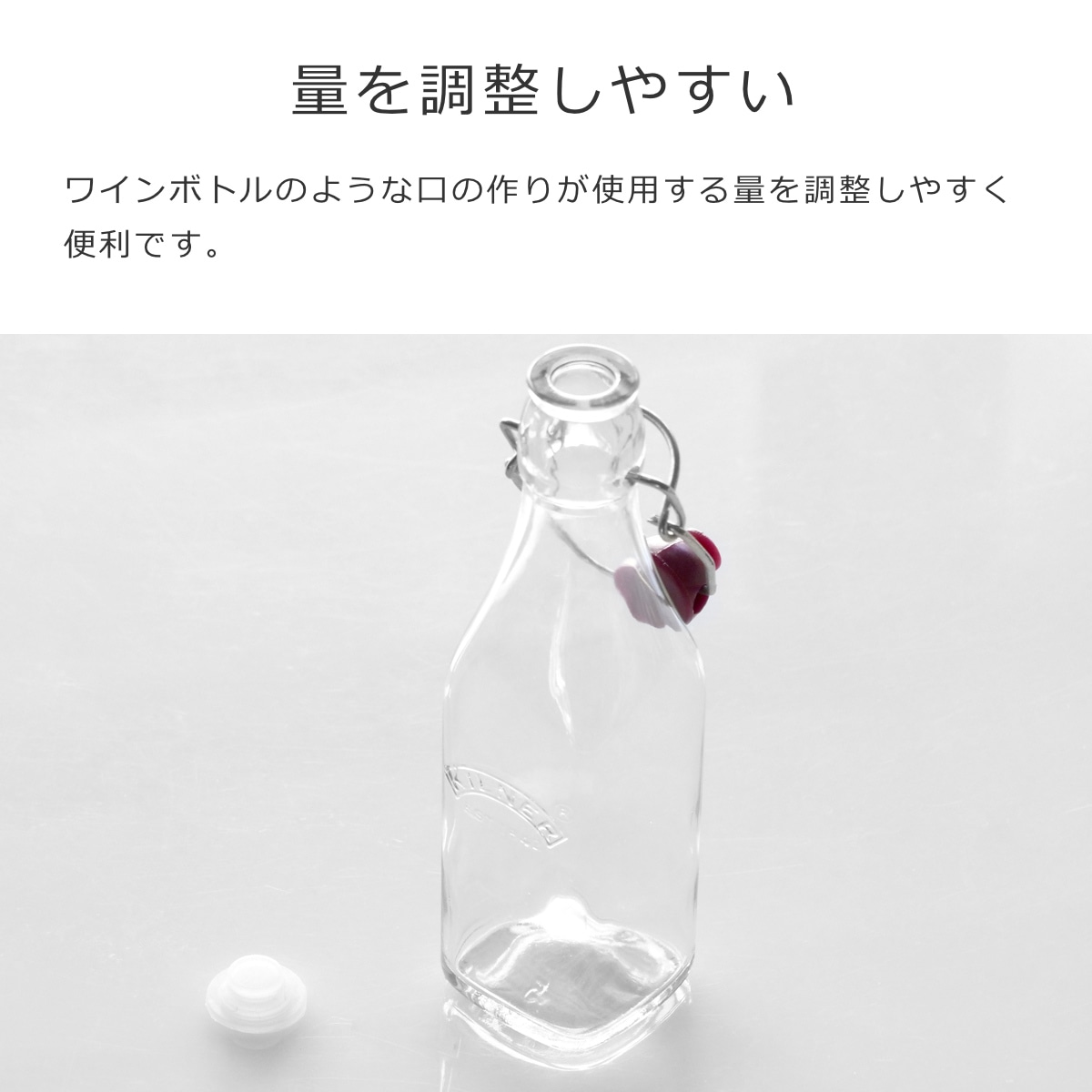 | 材質 | 本体:ソーダガラス フタ:ポリプロピレン、シリコーンゴム クリップ:ステンレススチール |