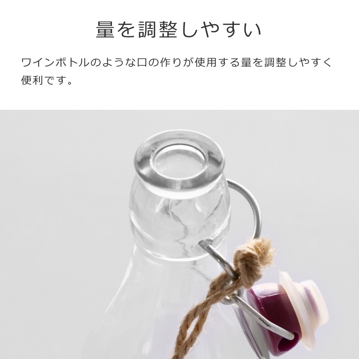 ワインボトルのような口の作りが、使用する量を調節しやすく便利です。