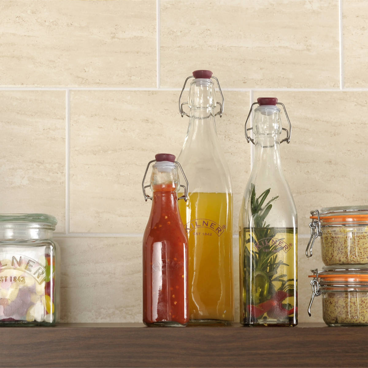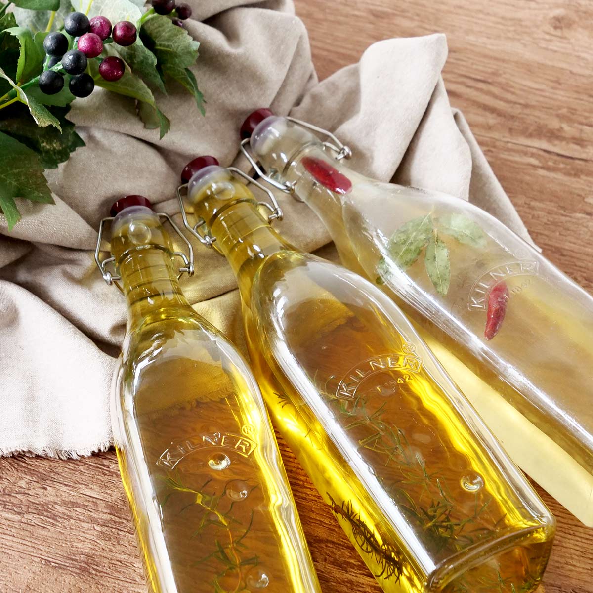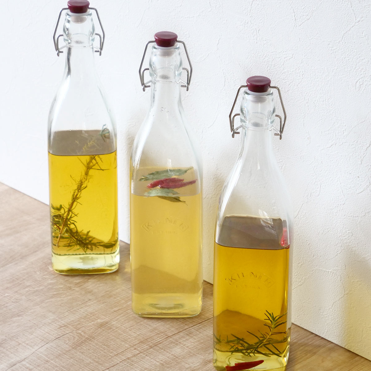 KILNERの保存ボトルは、用途に合わせて選べる使いやすいサイズ展開です。単体ではもちろん、種類別で複数使いすれば、キッチンが整って統一した空間が生まれます。