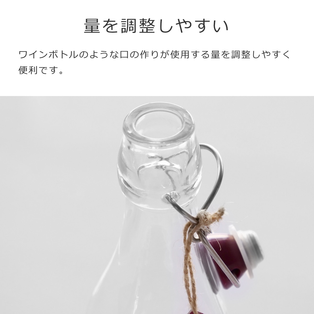 ワインボトルのような口の作りが、使用する量を調節しやすく便利です。