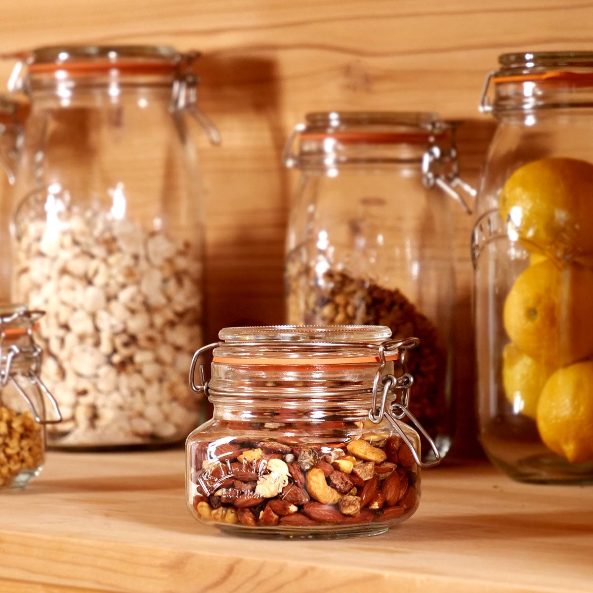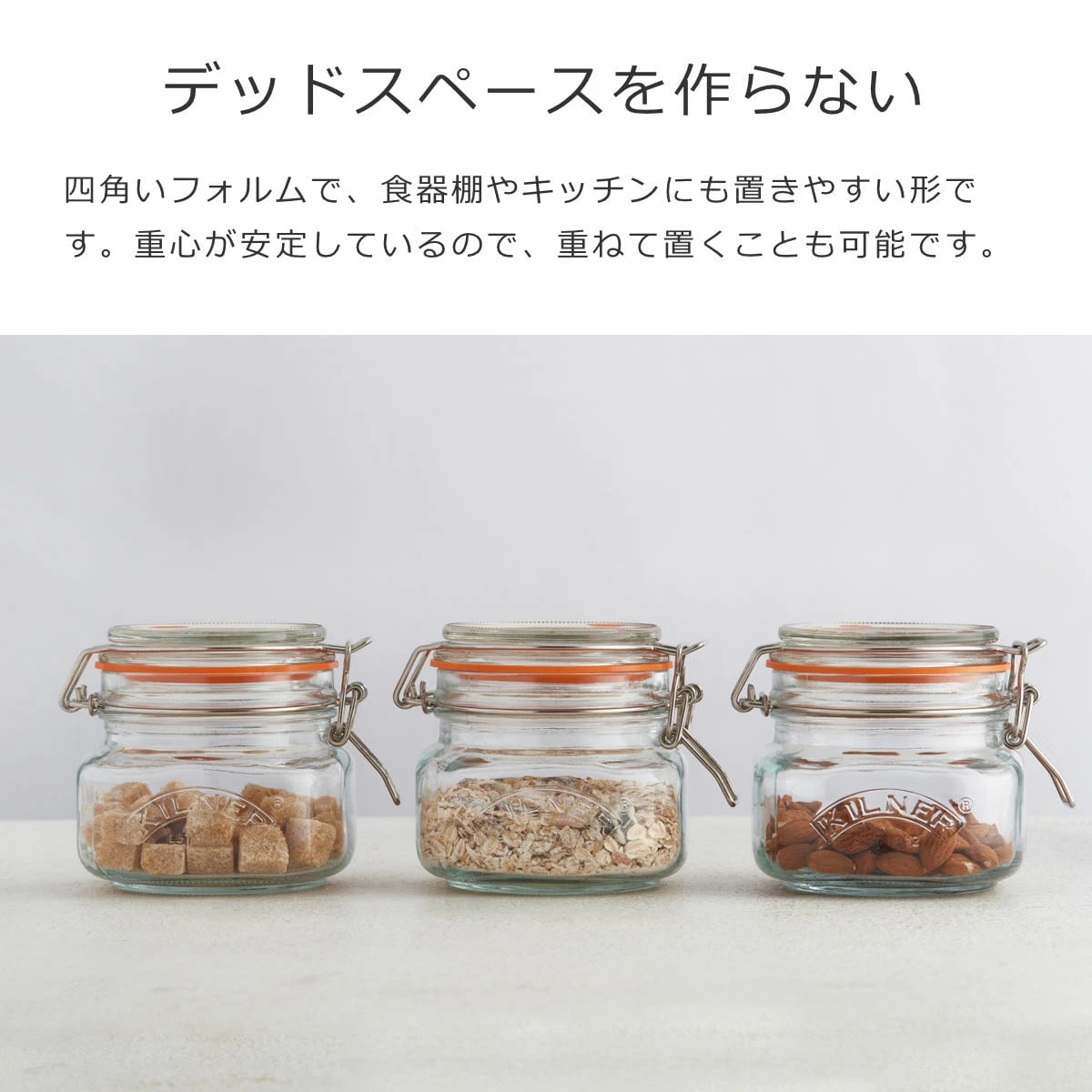 KILNERの保存瓶は、食材や用途に合わせて選べる豊富なサイズ展開です。単体での使用はもちろん、種類別で複数使いすれば、キッチンが整って統一した空間が生まれます。