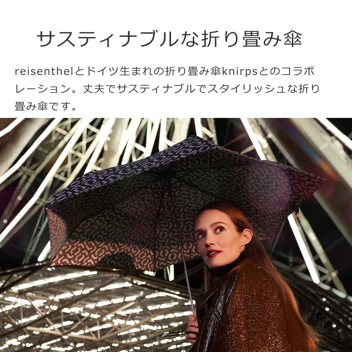 reisenthelとドイツ生まれの折り畳み傘knirpsとのコラボレーション。実績のあるKnirpsの技術を採用した、丈夫でサスティナブルでスタイリッシュな折り畳み傘です。