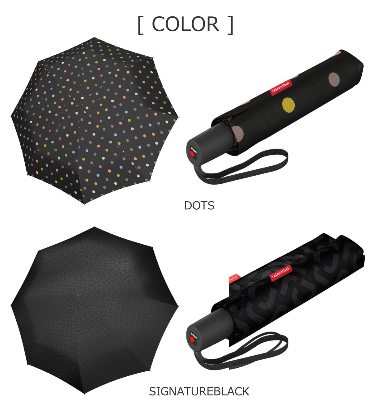 reisenthelとドイツ生まれの折り畳み傘knirpsのコラボレーション商品です。実績のあるKnirpsの技術を採用した、丈夫でサスティナブルでスタイリッシュな折り畳み傘になっています。