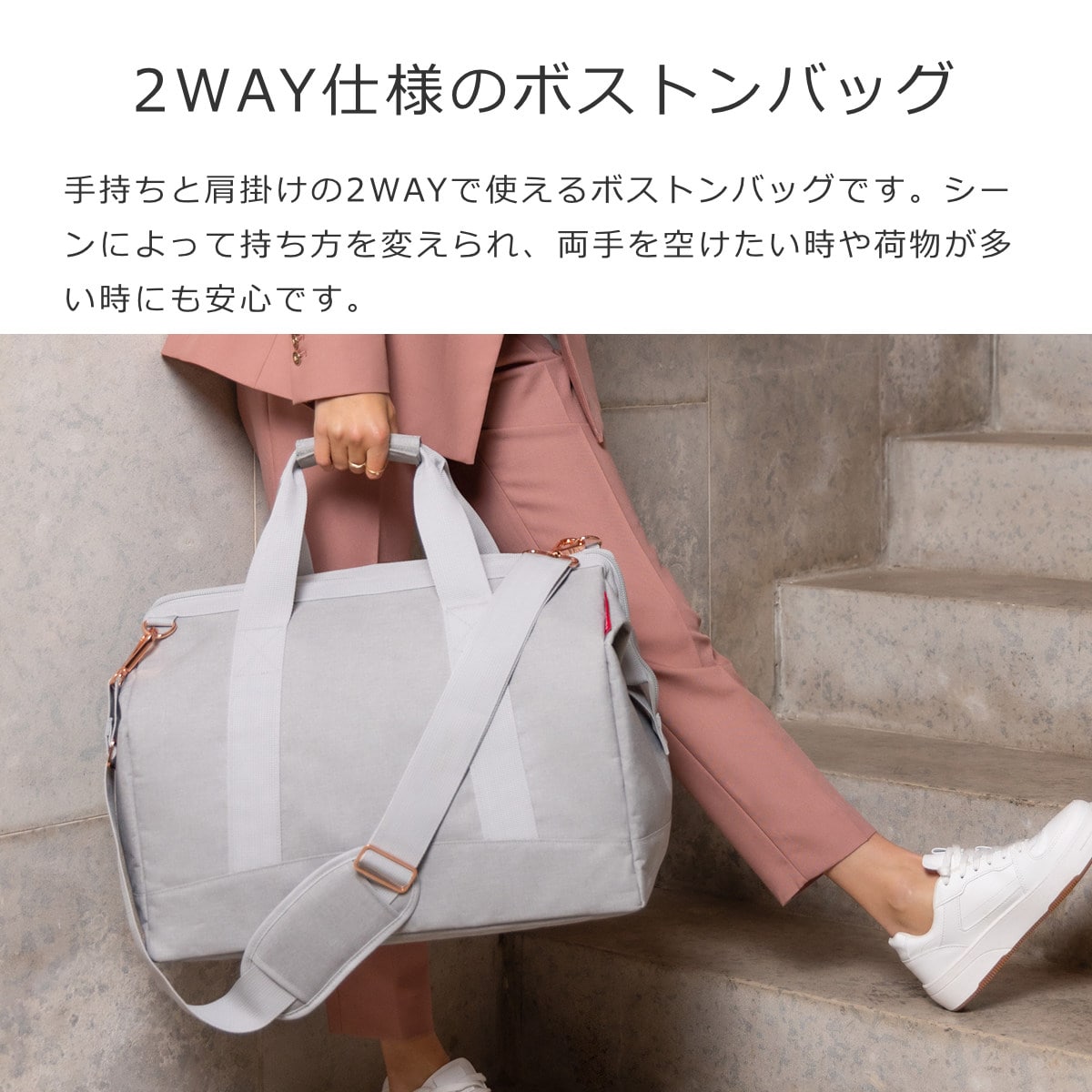 手持ちと肩掛けの2WAYで使える丈夫なボストンバッグです。シーンによって持ち方を変えられ、両手を開けたい時や荷物が多い時にも安心です。