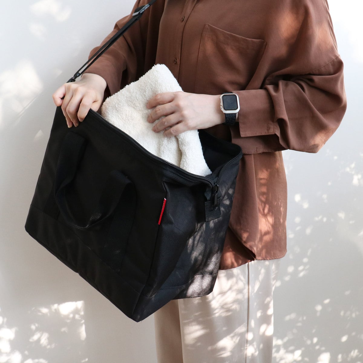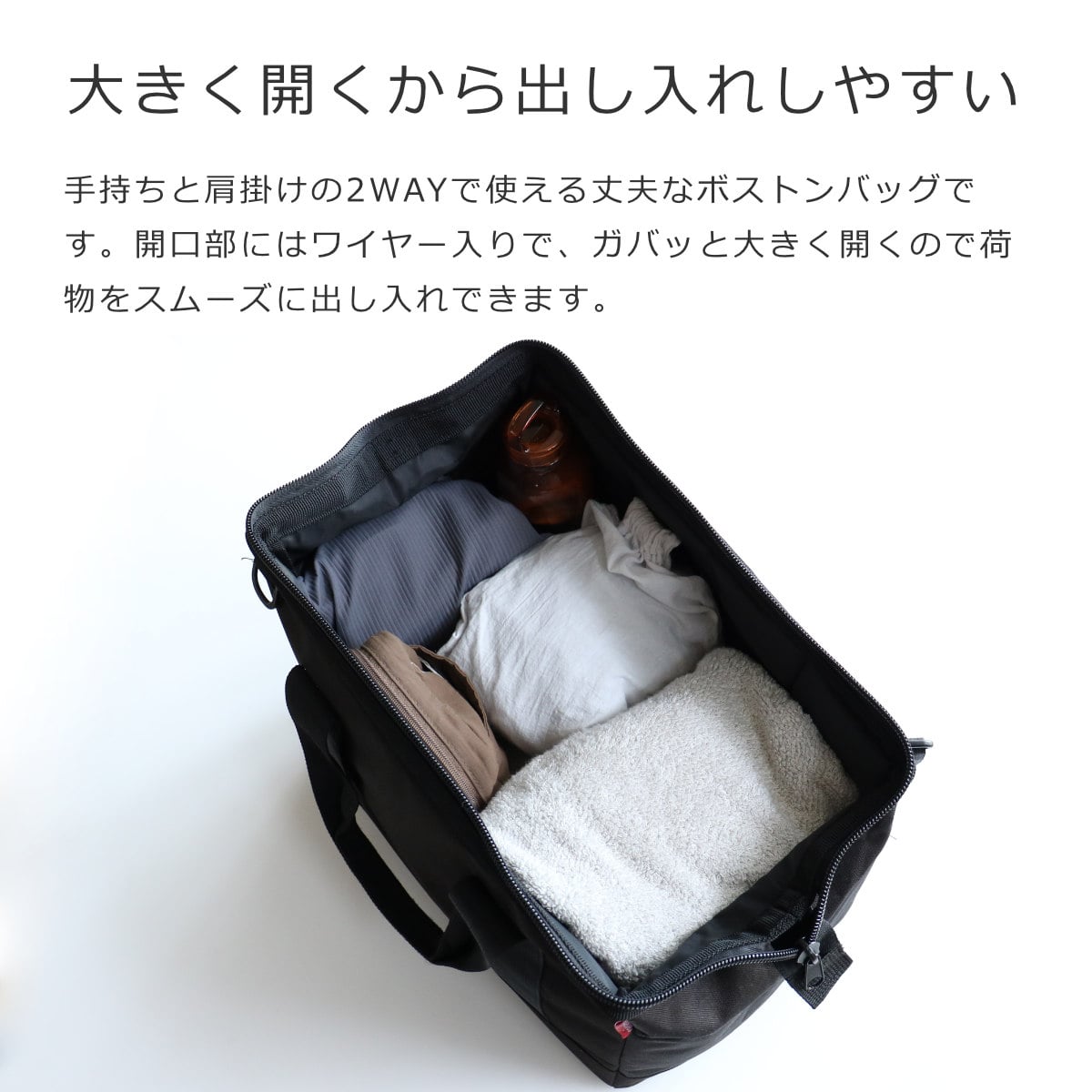 手持ちと肩掛けの2WAYで使える丈夫なボストンバッグです。シーンによって持ち方を変えられ、両手を空けたい時や荷物が多い時にも安心です。
