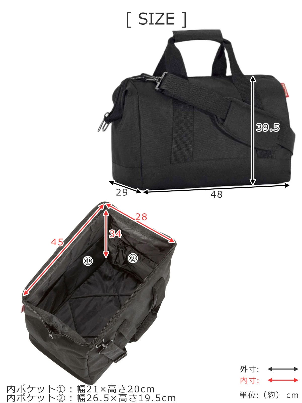 | サイズ | 外寸:約 幅48×奥行29×高さ39.5(cm) 内寸:約 幅45×奥行28×高さ34(cm) ショルダーベルト:最長 約140cm |