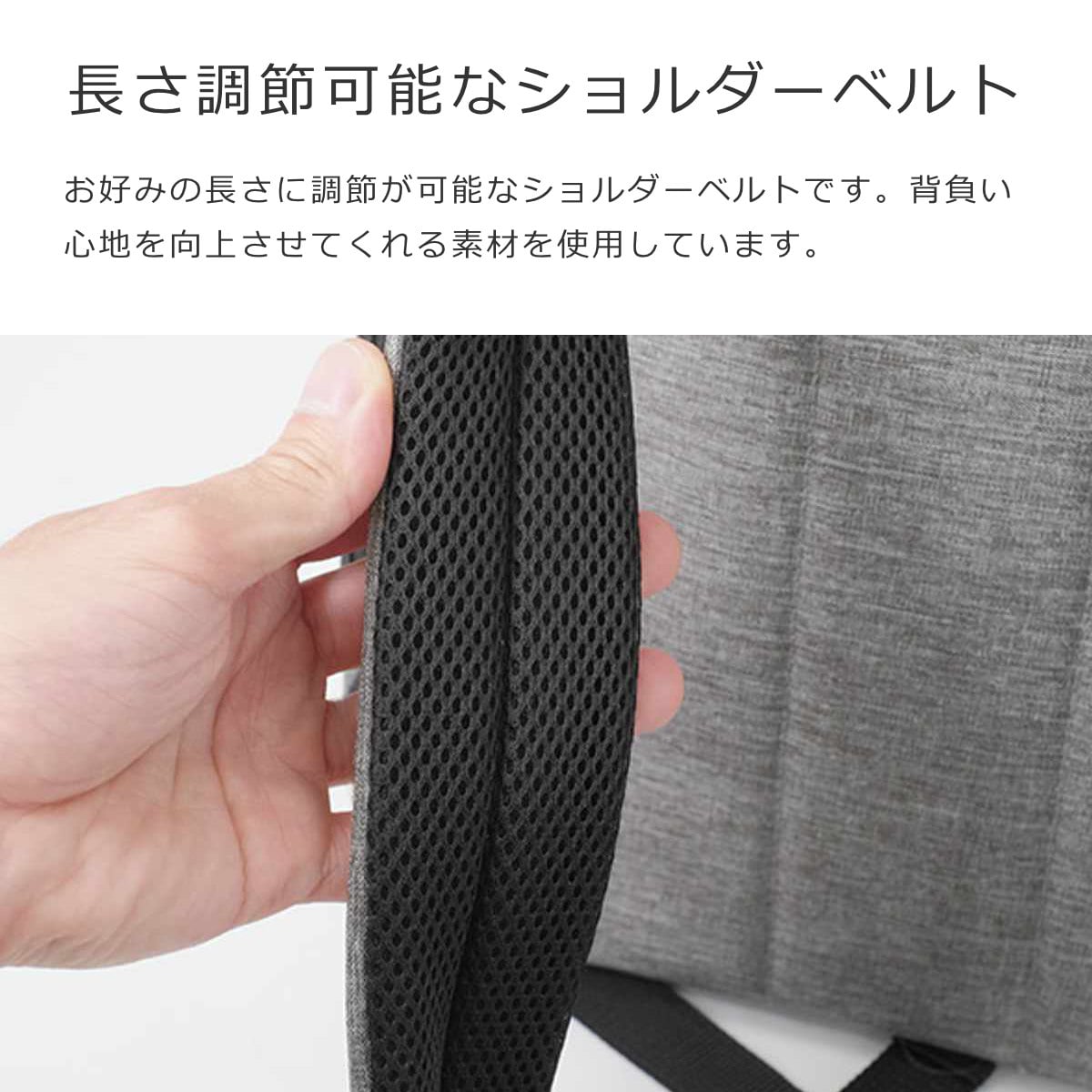 ショルダーベルトにはクッション性を持たせ、身体に当たる部分にはメッシュ素材を使用しているので、背負い心地を向上させてくれます。