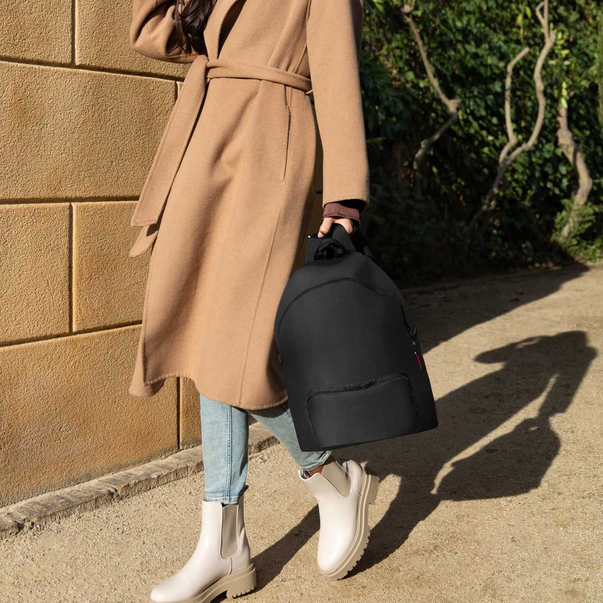 折りたたむと小さなポーチサイズになるので、バッグの中でかさばらず持ち運べます。バッグに入れておけば、急に荷物が増えた時にも便利です。
