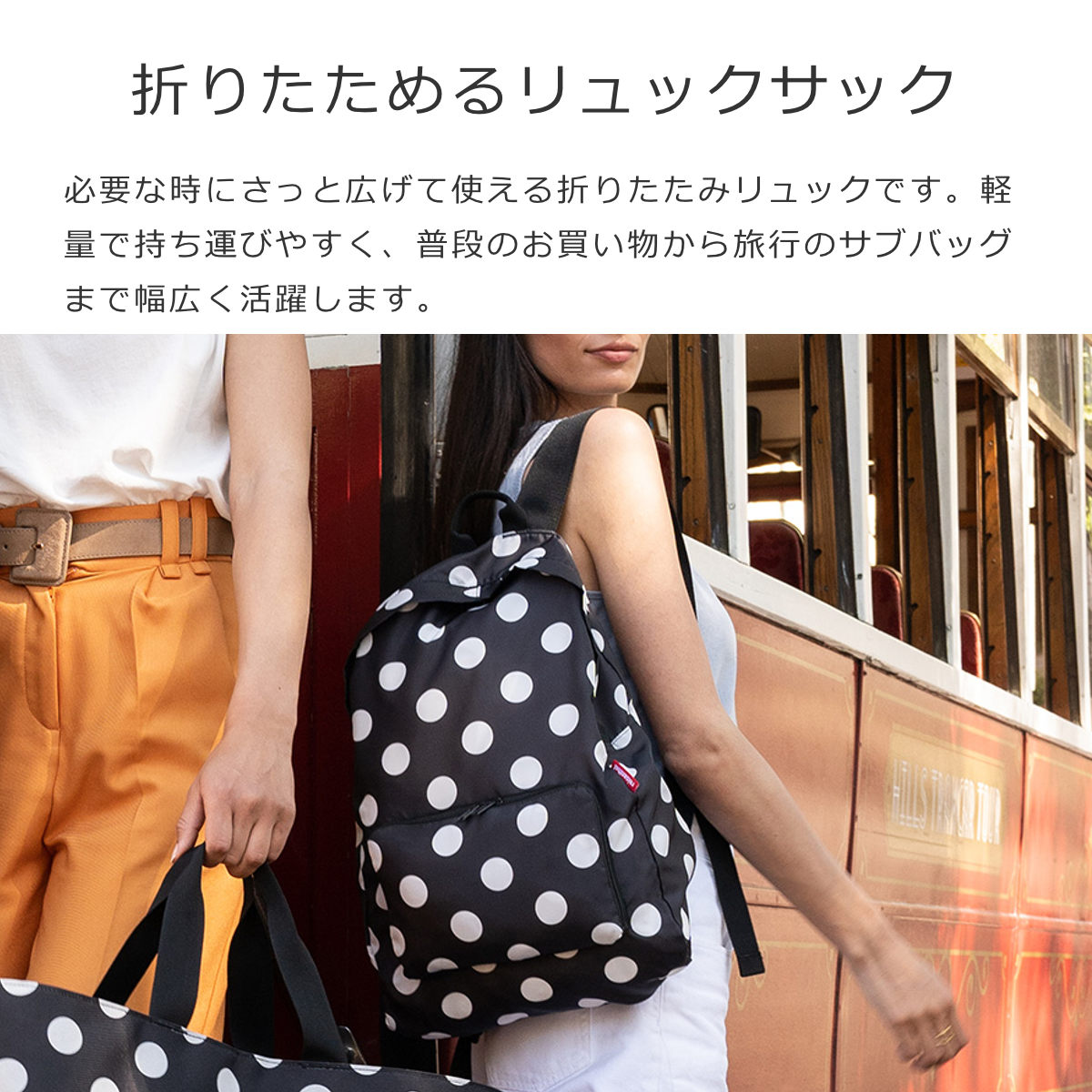 必要な時にさっと広げて使える折りたたみリュックです。軽量で持ち運びやすく、普段のお買い物から旅行のサブバッグまで幅広く活躍します。自転車に乗る方や両手を空けて持ち運びたい方におすすめです。
