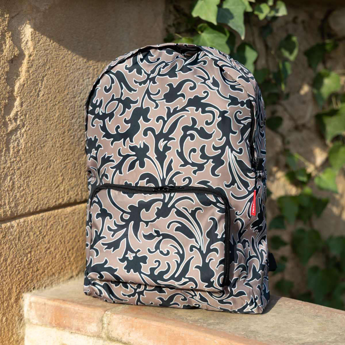 リュック外側には、ダブルジップ仕様のポケットが付いています。リュック本体と収納袋が一体化していて、折りたたみ時の収納袋になります。