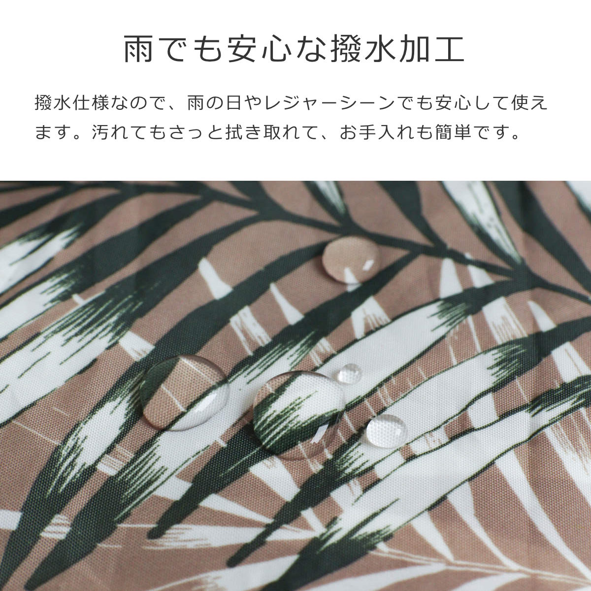 撥水仕様なので、雨の日やレジャーシーンでも安心して使えます。汚れてもさっと拭き取れて、お手入れも簡単です。