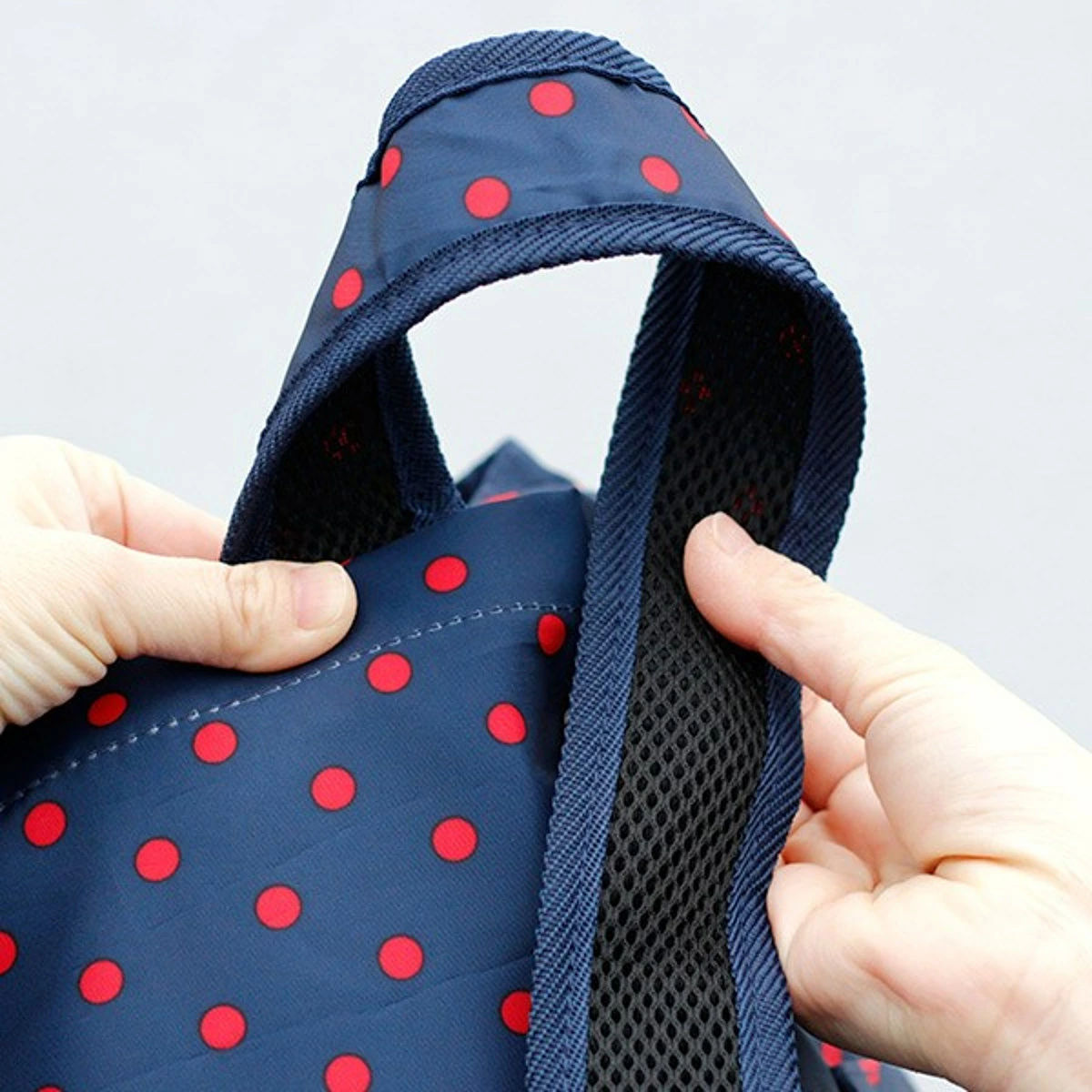 クッション性に優れたパッド入りのショルダーストラップです。背面はメッシュ仕様で、折りたたみバッグながらも快適な背負い心地です。
