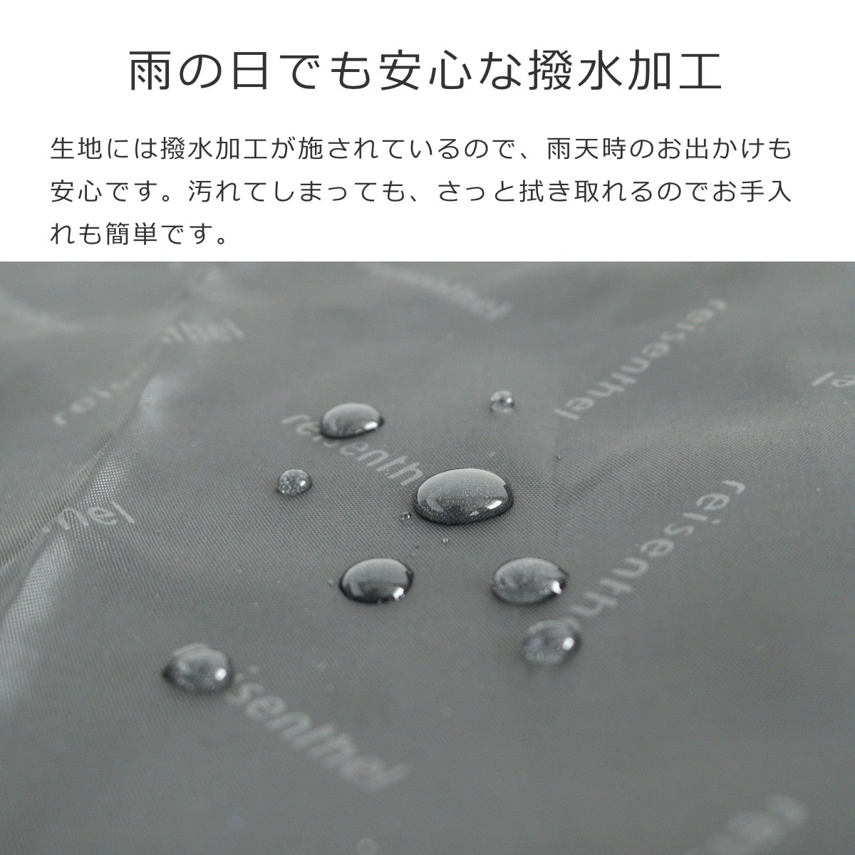 生地には撥水加工が施されているので、雨天時のお出かけも安心です。汚れてしまっても、さっと拭き取れるのでお手入れも簡単です。