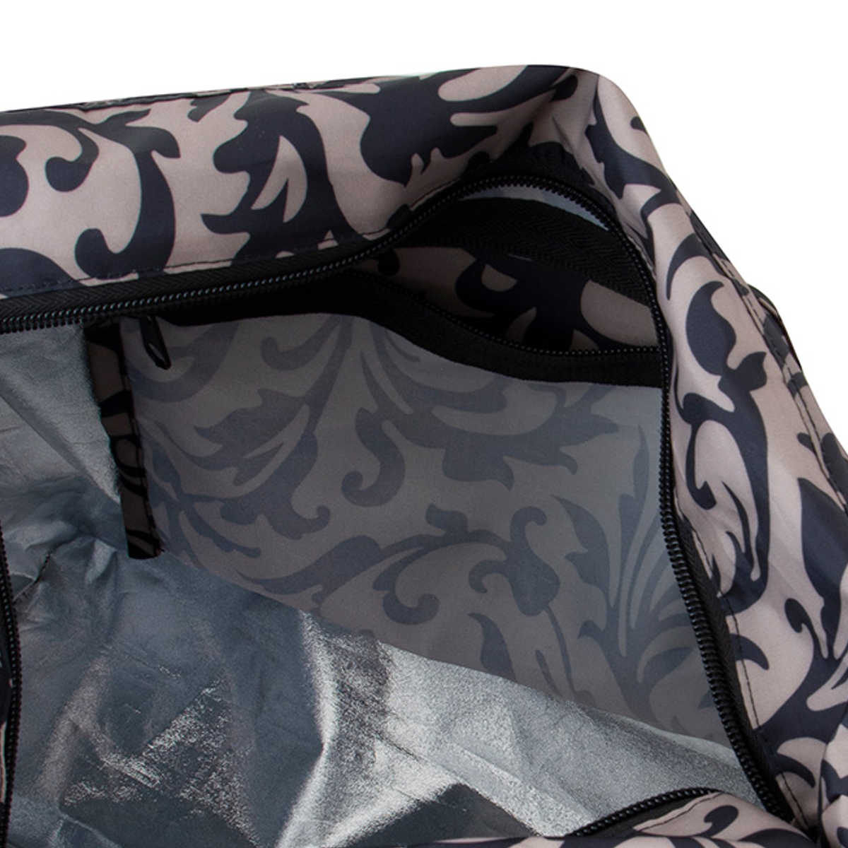 開口部をファスナーで閉じれば、中身を隠して持ち運びできます。マチは20cmあるので傾けたくないお肉やお惣菜も安定します。耐荷重20kgの丈夫な素材で出来ているので重たくなっても安心です。