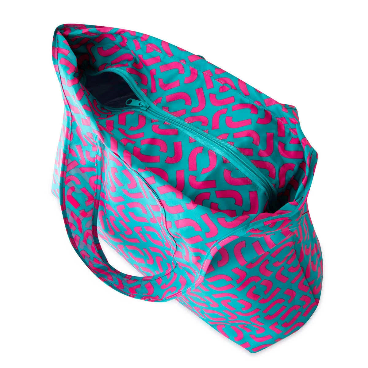 バッグ内側のポケットが収納袋になり、コンパクトに折りたたんで収納することができます。たたみ方はまずポケットと同じ幅に折りたたみます。ポケットにくるりと折り込んで収納完了です。