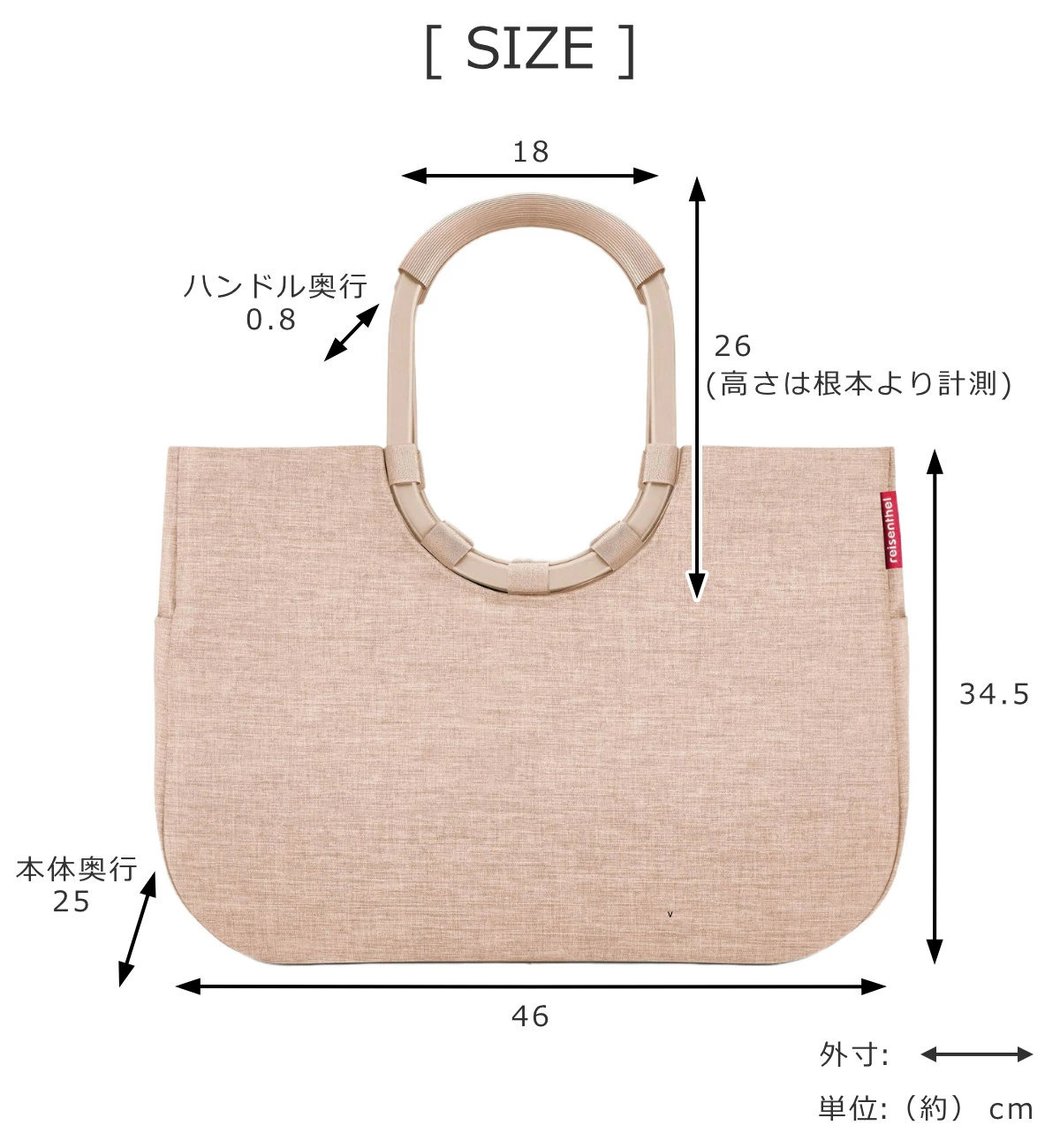 | サイズ | 約 幅46×奥行25×高さ34.5(cm) 持ち手:約 幅18×高さ26×奥行0.8(cm) (高さは根本より計測) |