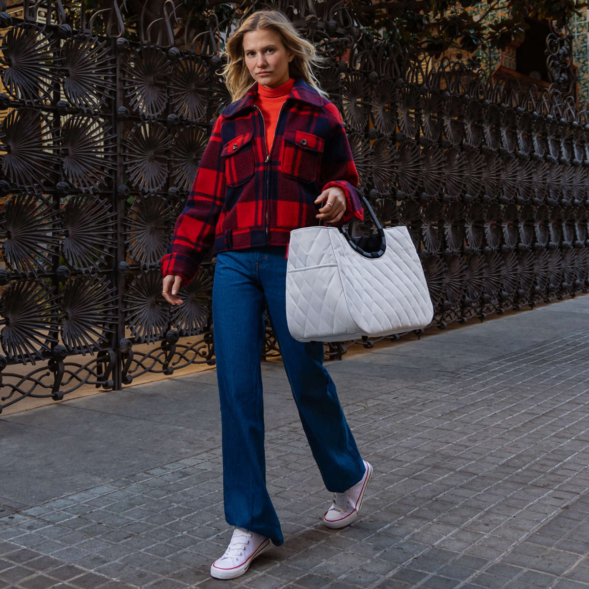 高級感のあるエレガントなバッグです。楕円形のアルミハンドルは、手で持ったり肩に掛けたりと、どんなスタイルにも合わせていただけます。
