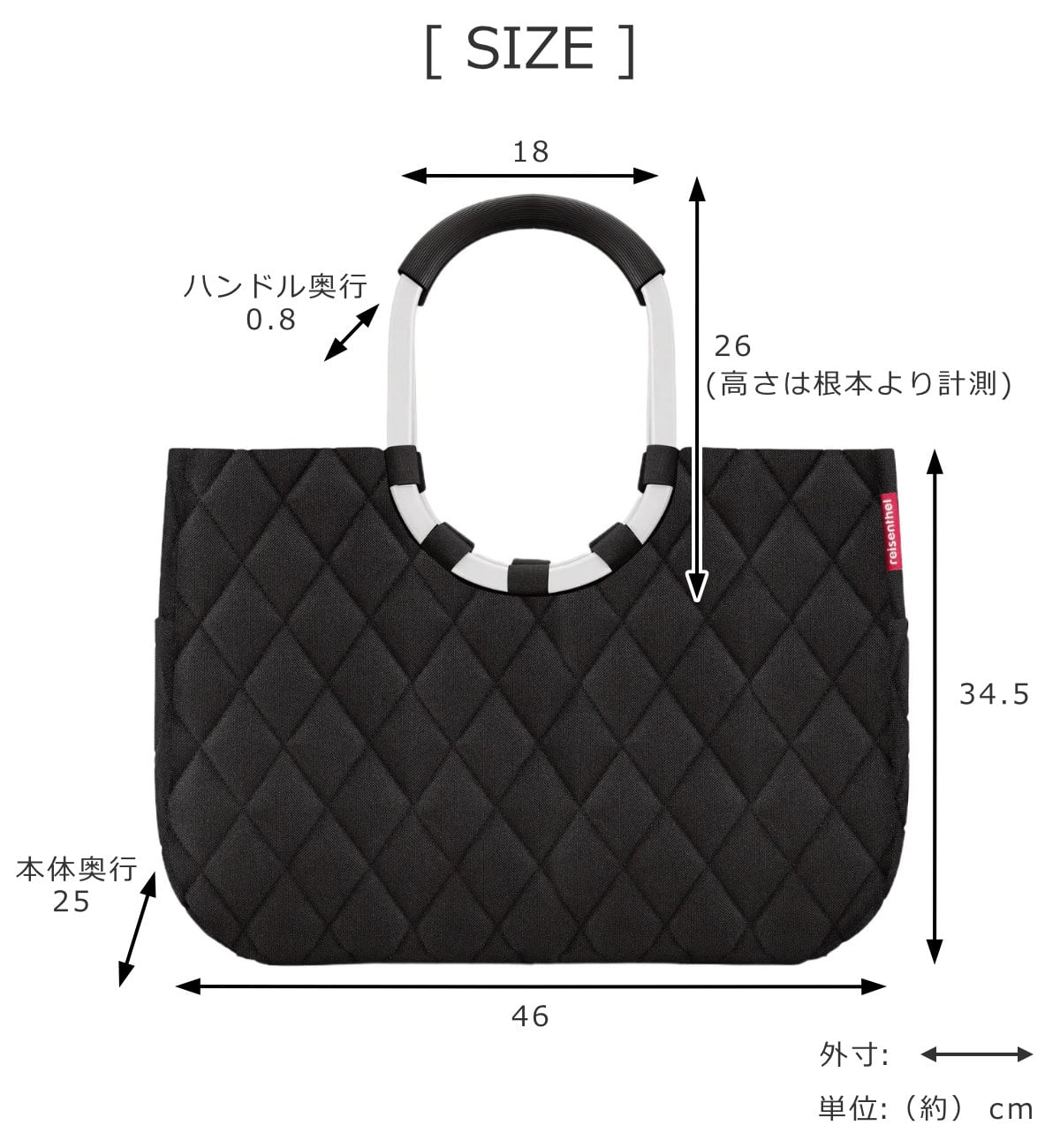 | サイズ | 約 幅46×奥行25×高さ34.5(cm) 持ち手:約 幅18×高さ26×奥行0.8(cm) (高さは根本より計測) |