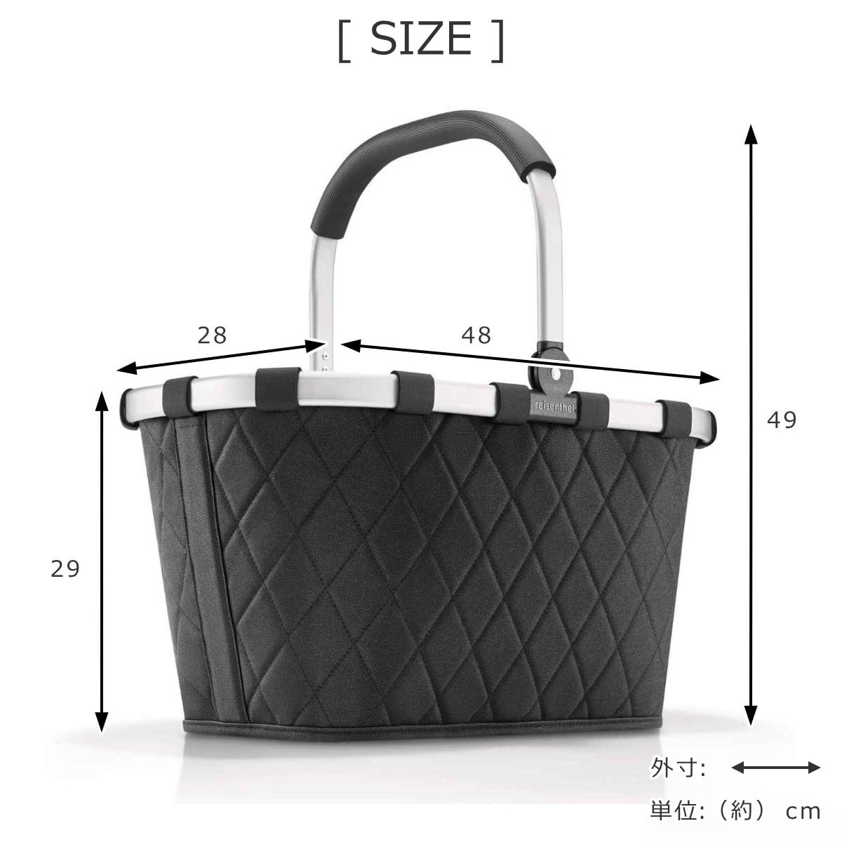 | サイズ | 外寸:約 幅48×奥行28×高さ29(cm) 内寸:約 幅44×奥行25×高さ22(cm) ハンドル含む全高:約 49(cm) 底内側:約 幅36×奥行19(cm) |