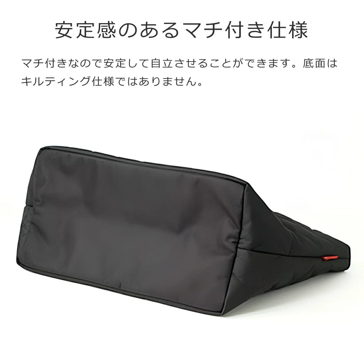 マチ付きなので安定して自立させることができます。底面はキルティング仕様ではありません。