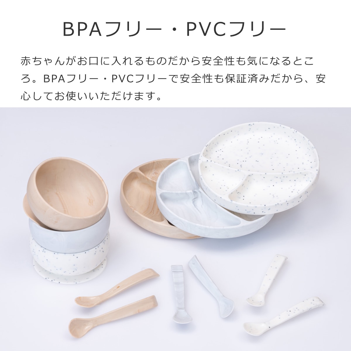 赤ちゃんがお口に入れるものだから安全性も気になるところ。BPAフリー・PVCフリーで安全性も保証済みだから、安心してお使いいただけます。