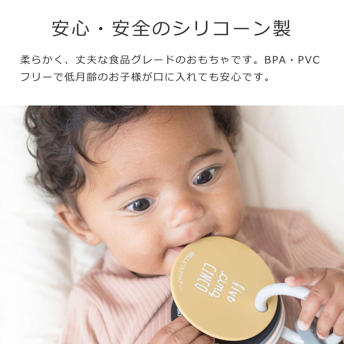 口に入れても安全、柔らかく、丈夫な食品グレードシリコーンゴムで作られたおもちゃです。BPAフリー、PVCフリーで低月齢のお子様が口に入れても安心です。