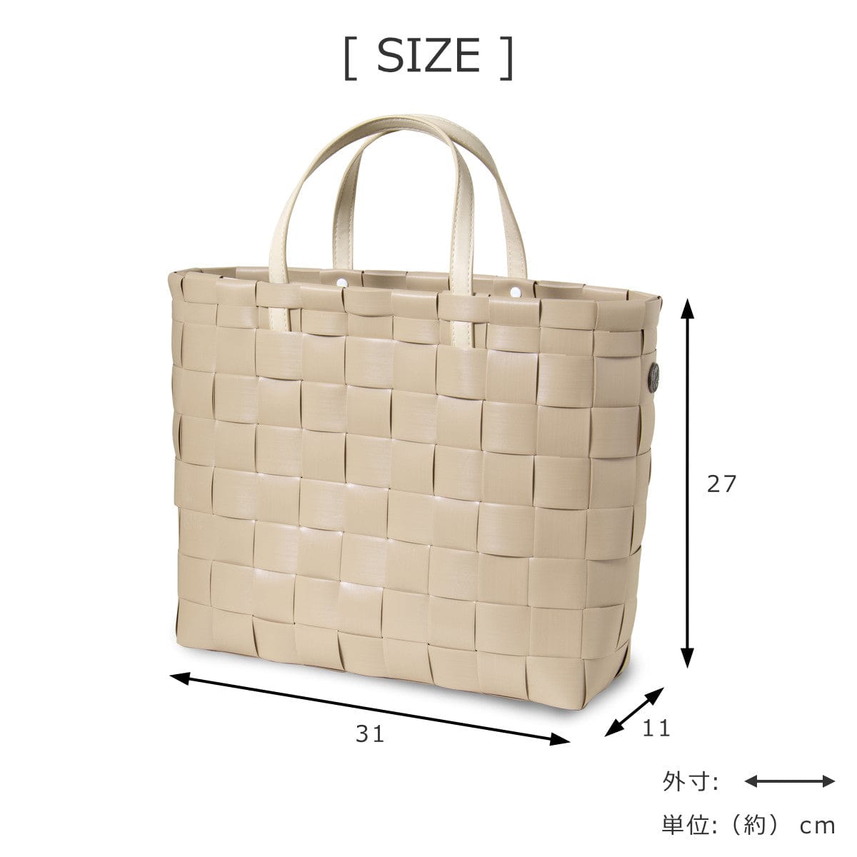 サイズは、幅31×高さ27cm、マチが11cmです。必要なものが全て入る大きさなので、オフィスやお買い物にもお使いいただけます。