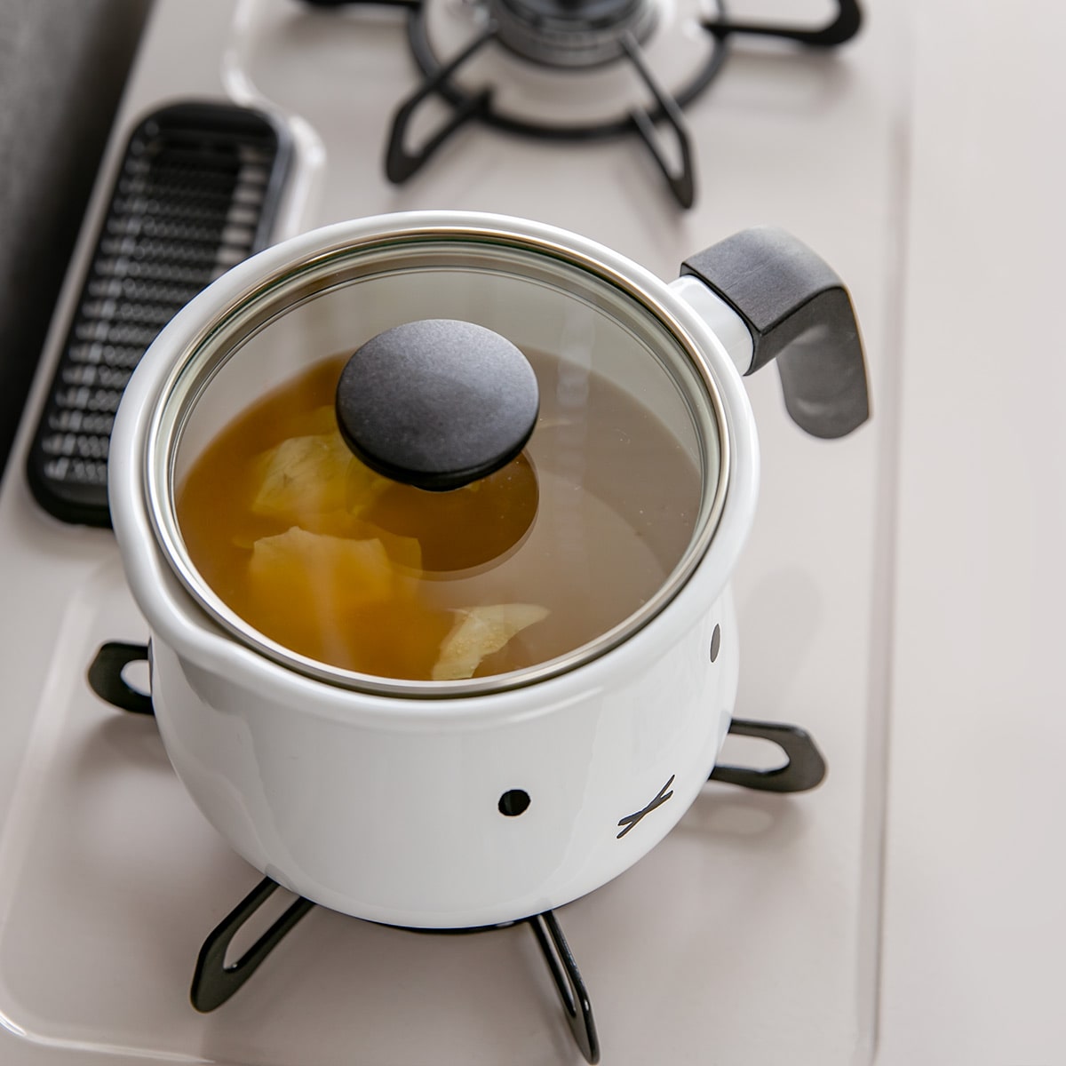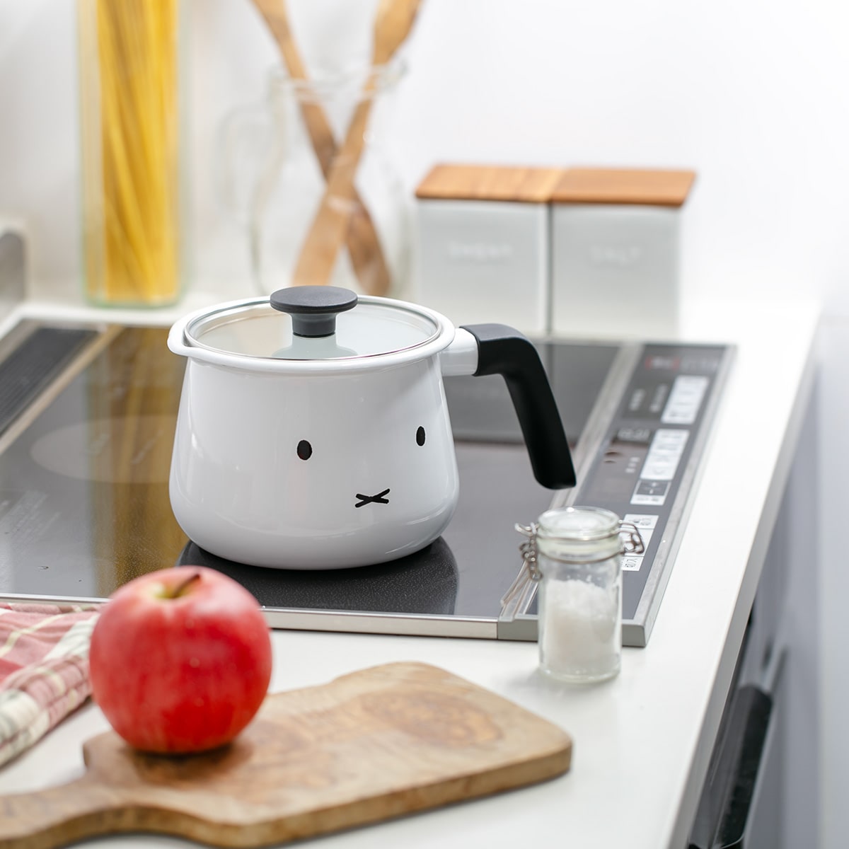 ミッフィーのかわいいおかおがデザインされた、ホーロー製のマルチポットです。煮る・茹でる・炒める・揚げる・和える・沸かすなど、さまざまな調理に活躍します。深さがあるので汚れがまわりに飛び散りにくく、キッチンをきれいに保つことができます。