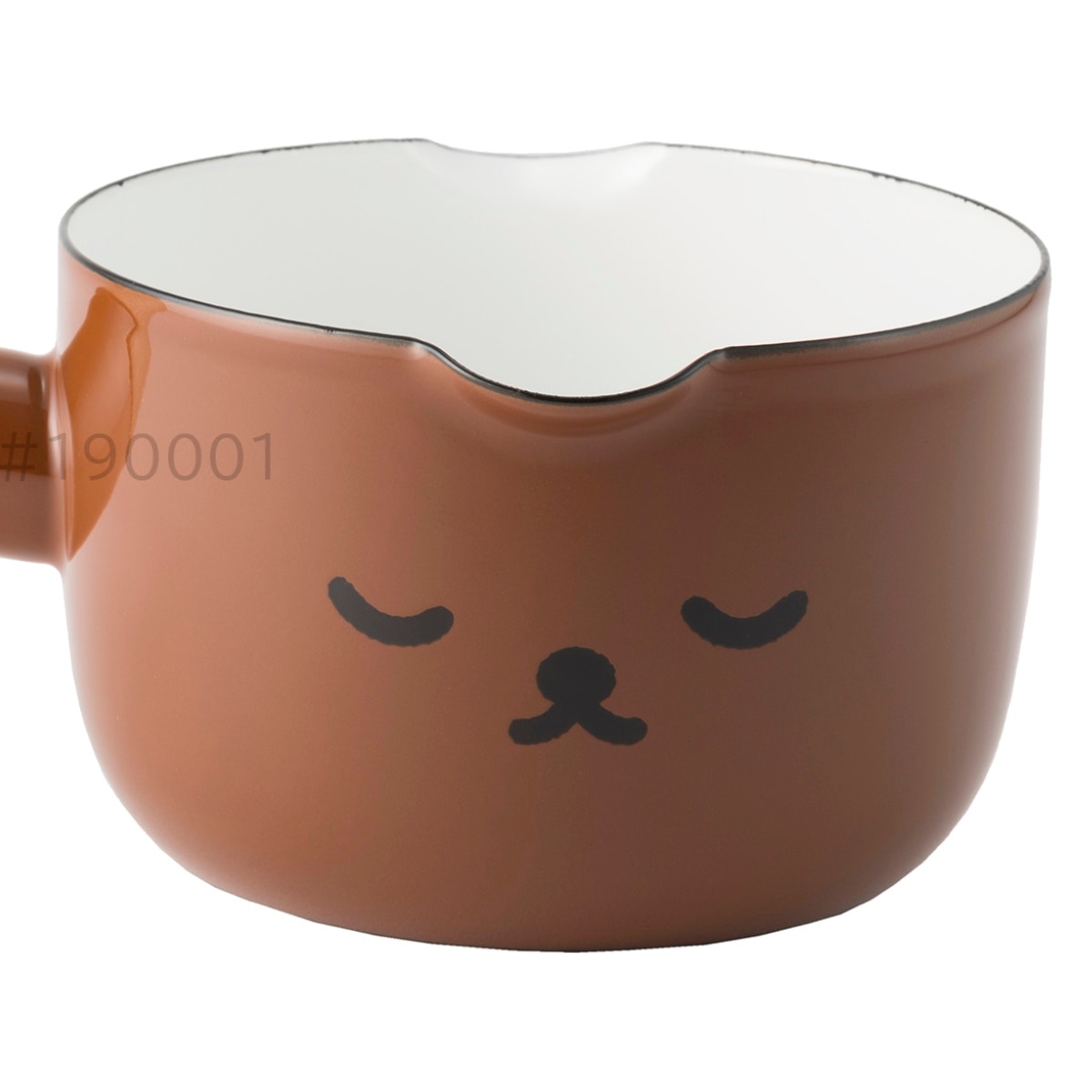 ボリスのかわいいおかおがデザインされたホーロー素材のミルクパンです。1~2人分のドリンクの温めやスープ作り、離乳食作りにちょうど良いサイズです。