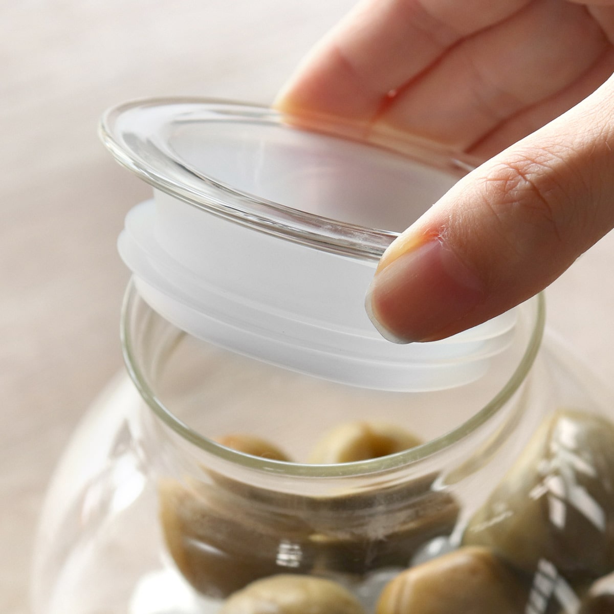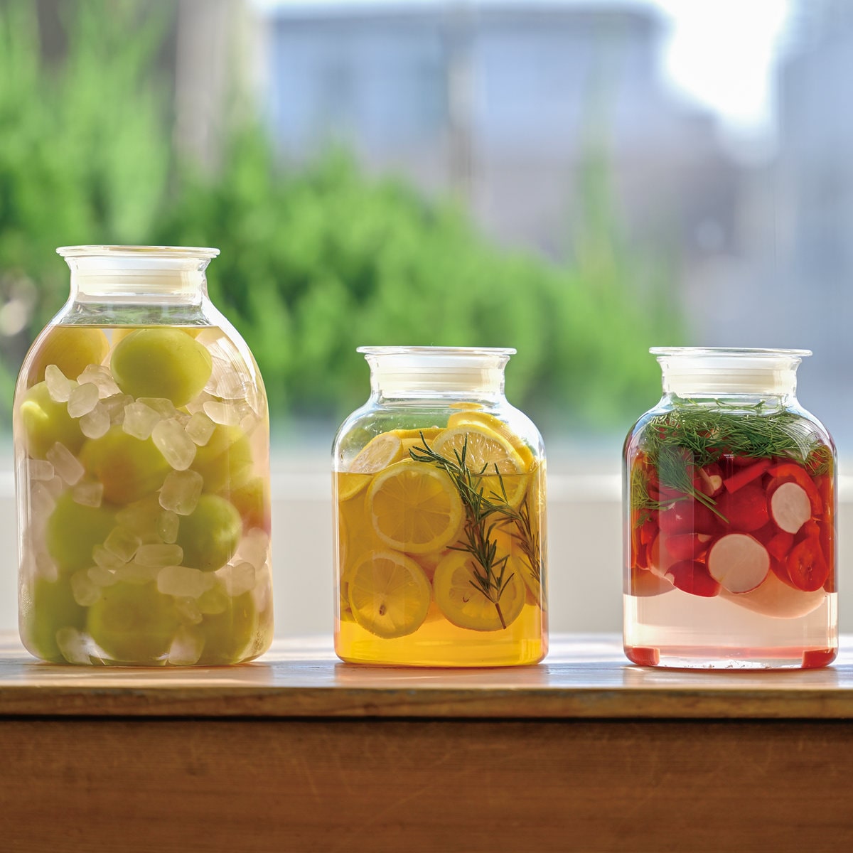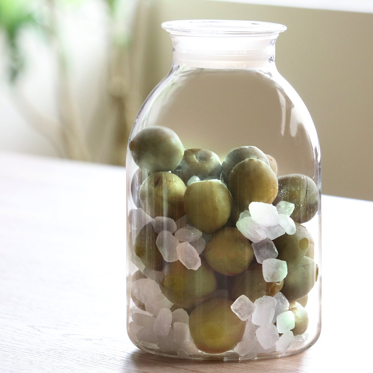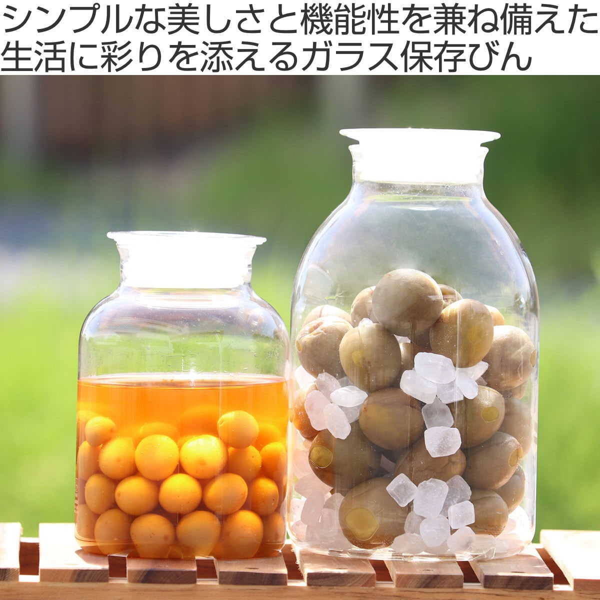 耐熱ガラス素材にこだわり、美しさと機能性をあわせ持つデザインが魅力の保存びんです。耐熱ガラスを使用した容器とフタは、酸やアルコールに強く、におい移りも少ないので、自家製の梅酒や麹などの保存食作りにピッタリです。季節の食材や好きな果物で手作りすることで、お好みの塩梅に仕上げることができておすすめです。