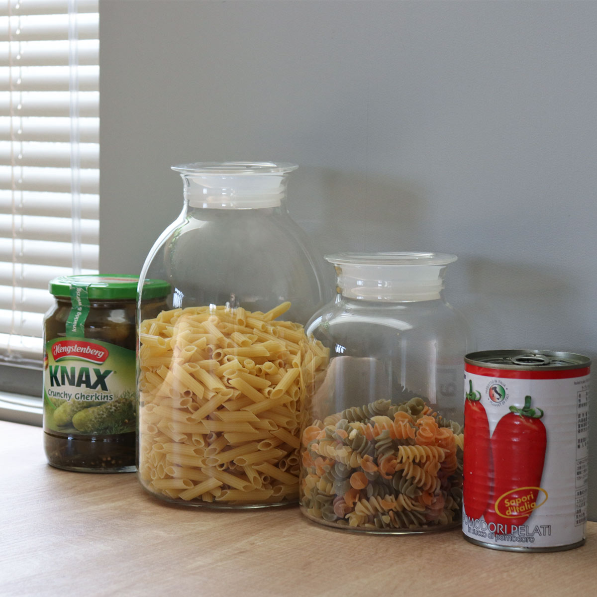 保存食作りだけでなく、ご家庭に合わせて色々な使い方ができます。ショートパスタなどの乾物の保存や、紅茶やコーヒー・ソースなどの保存、小物を収納したりしてもお洒落にまとまります。また、サイズ違いなどを揃えてたくさん並べてもお洒落なインテリアになります。