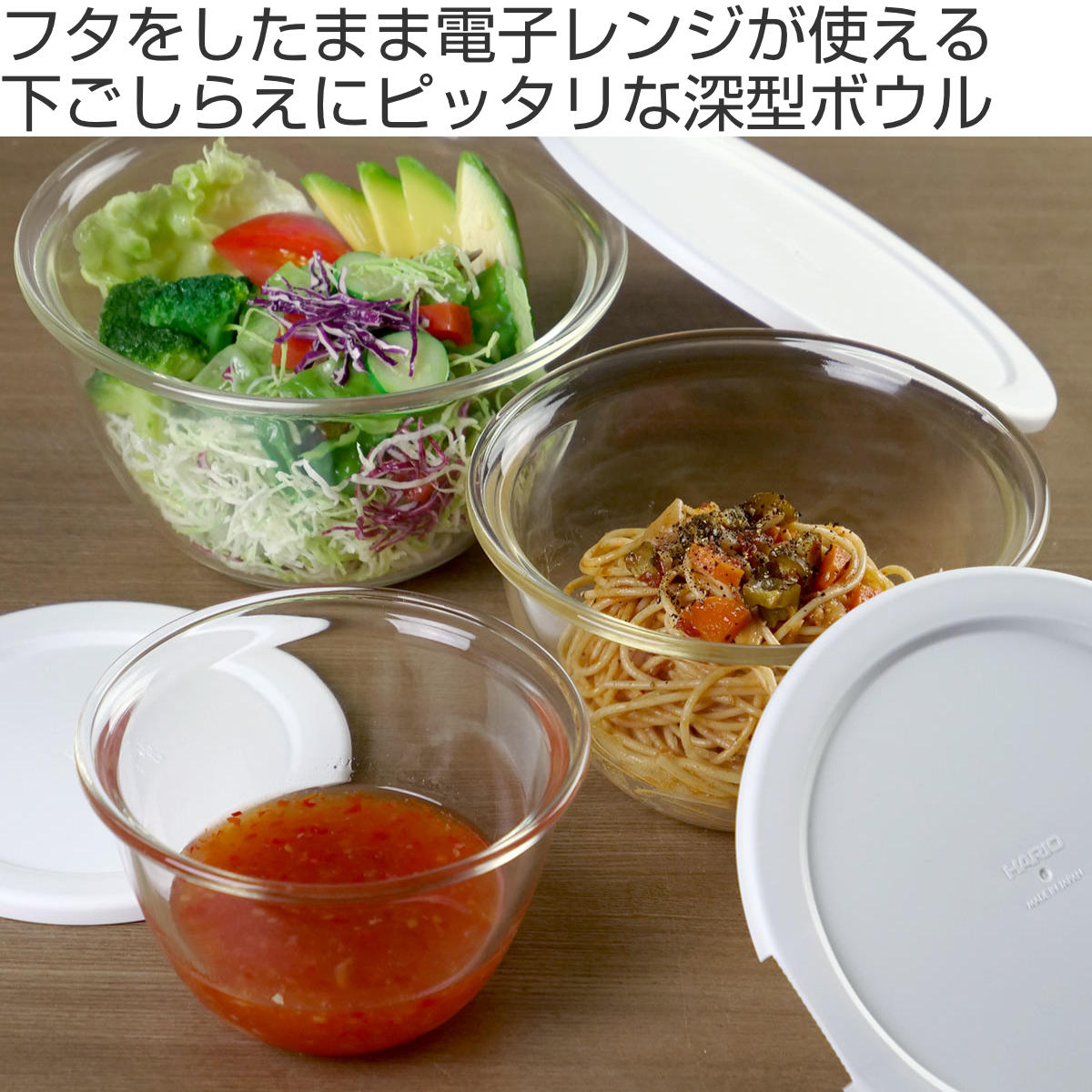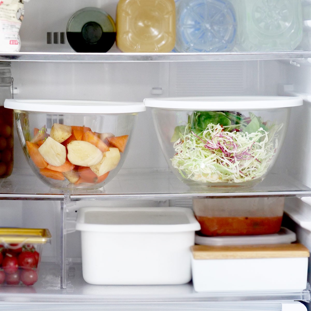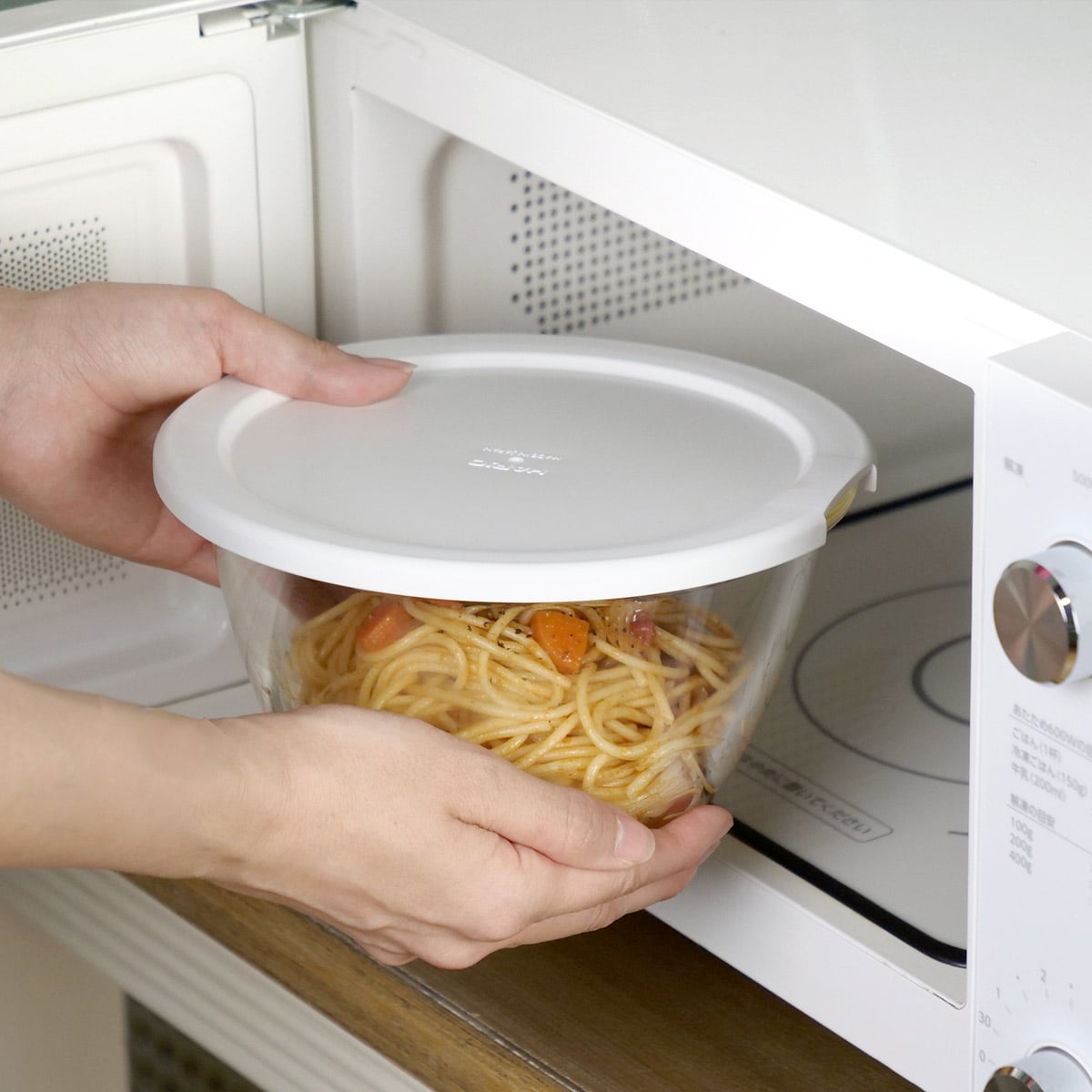 フタをしたまま電子レンジで使える、ガラス製のボウルセットです。作り置きした料理やボウルで混ぜた食材をそのまま加熱できるので、下ごしらえや様々な調理に活躍します。ラップを使わずにすむのでエコで経済的なのも嬉しいポイントです。