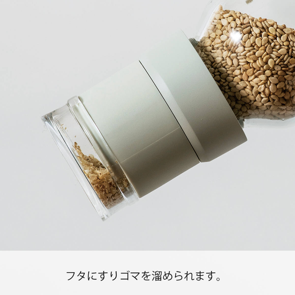 ●透明で深めのフタに挽いたゴマを溜められます。