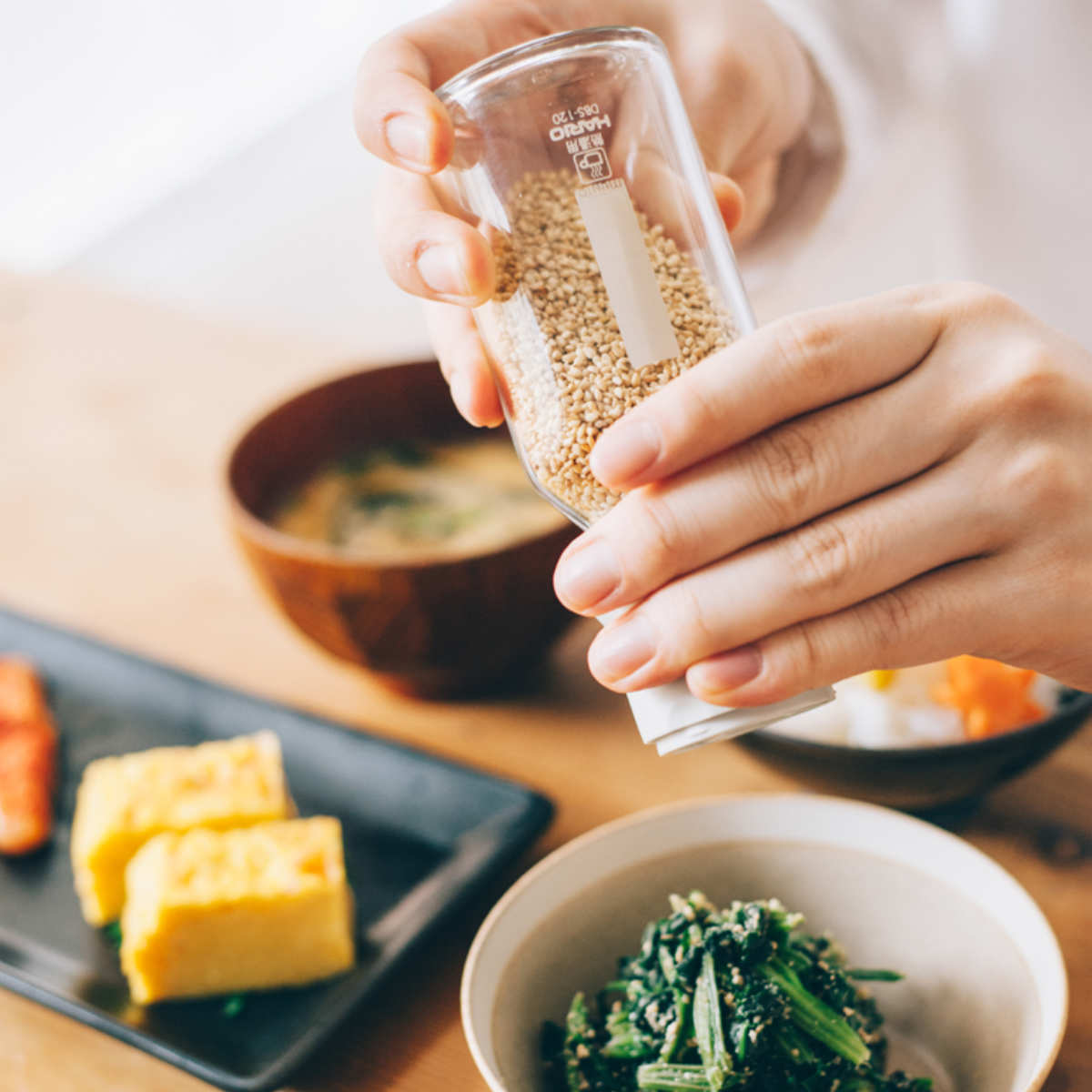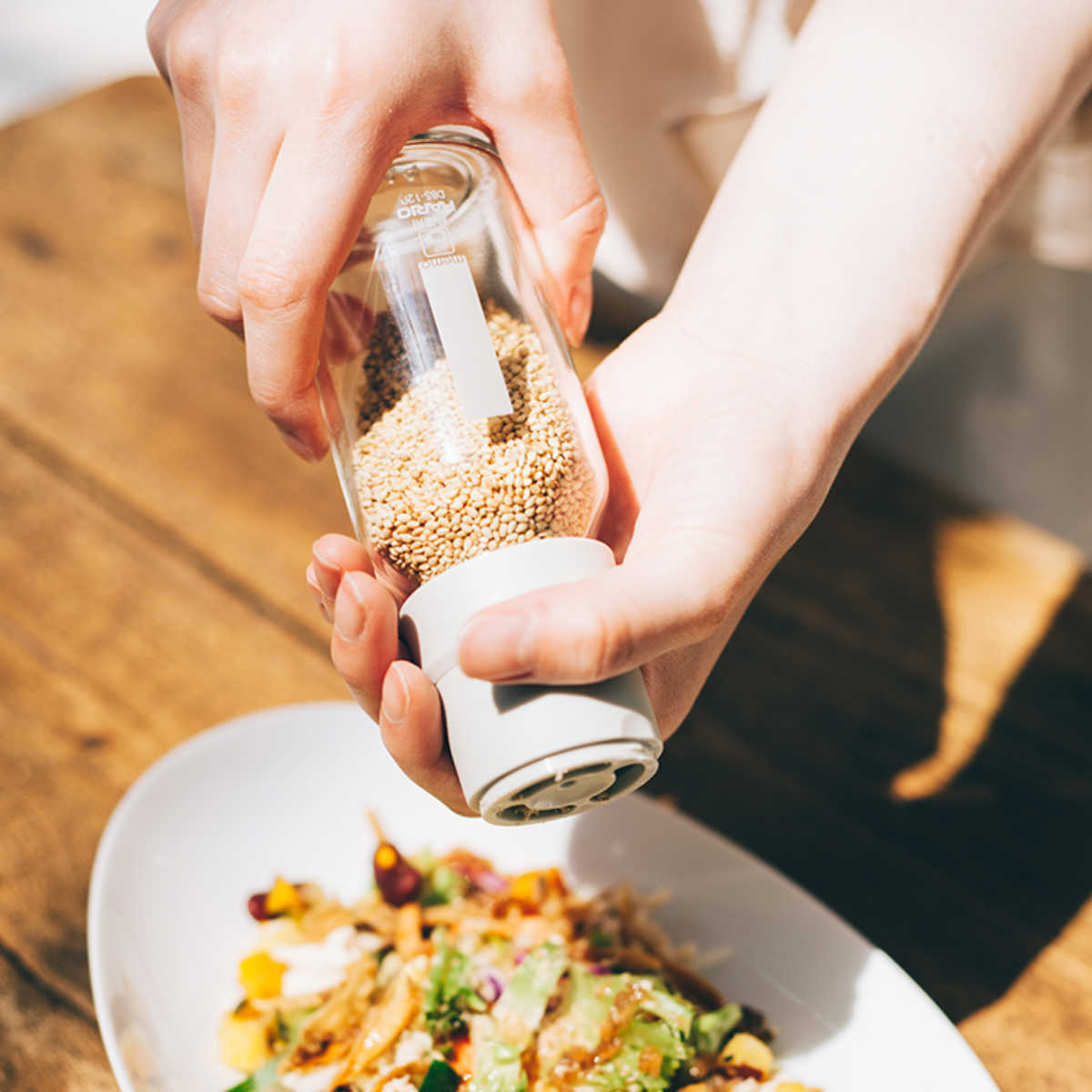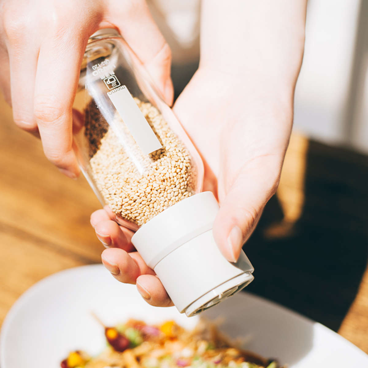 ボトル内のゴマを調理中の湿気から守る