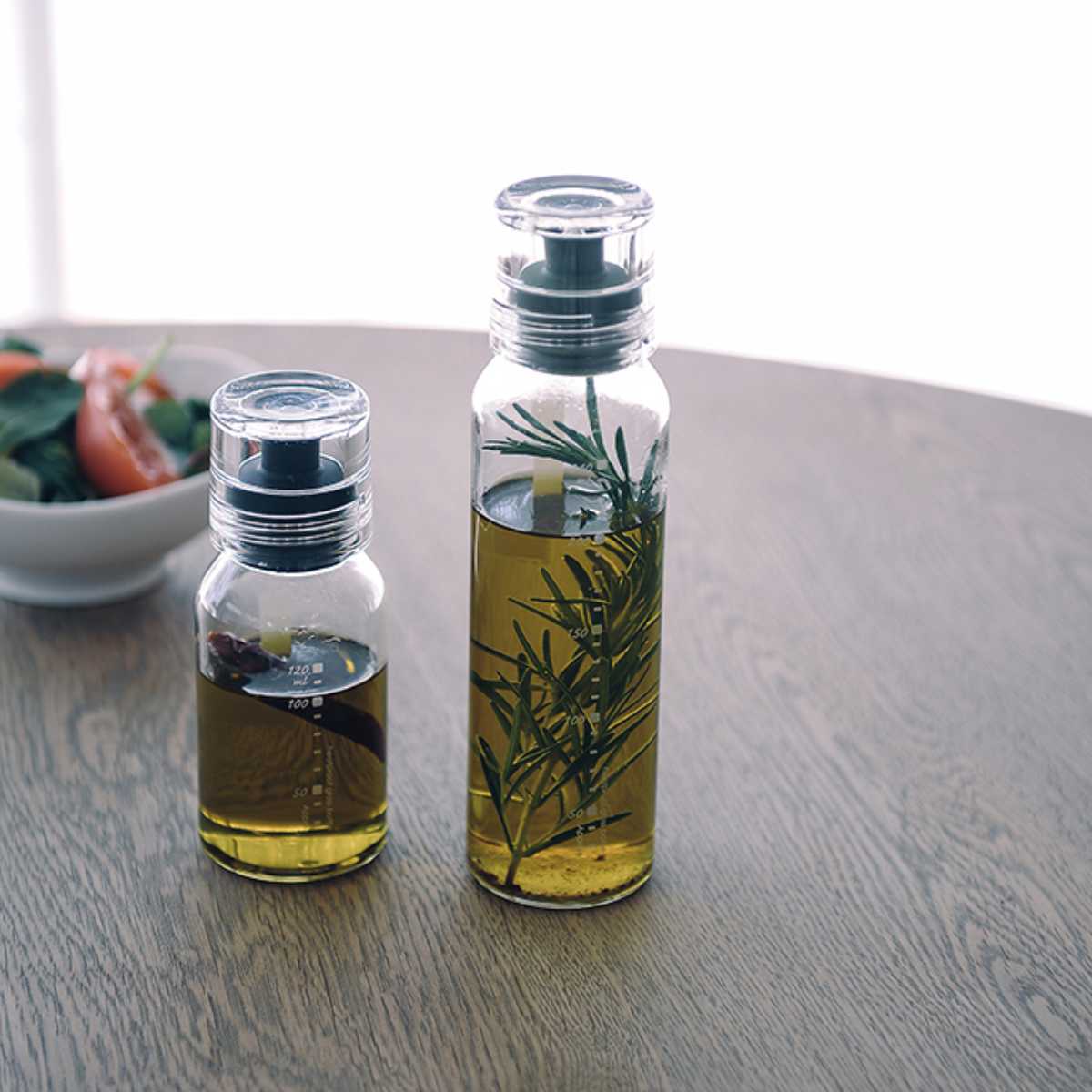 透明感のあるガラス製なので、手作りのハーブオイルやフレーバーオイルにもおすすめです。見た目も美しく、日々の暮らしに彩りを添えてくれます。