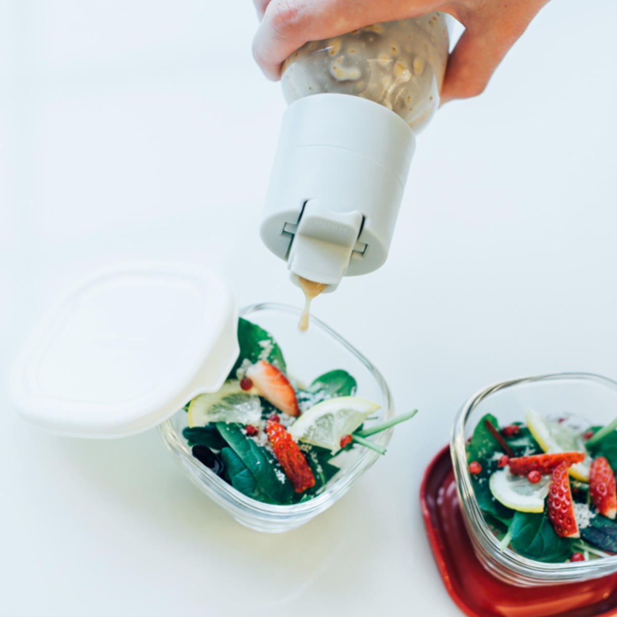 目盛り付きなので、計量スプーンやカップを使わずに調味料を入れることができます。また、液漏れしにくい構造になっているので、しっかり混ぜ合わせることができ、簡単にドレッシングが作れます。
