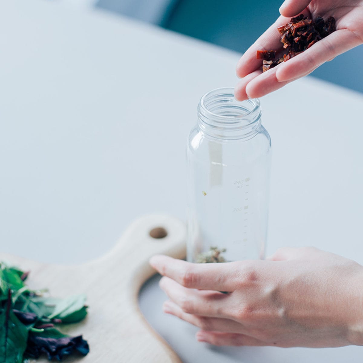 透明感のあるガラス製なので、手作りのハーブオイルやフレーバーオイルにもおすすめです。見た目も美しく、日々の暮らしに彩りを添えてくれます。