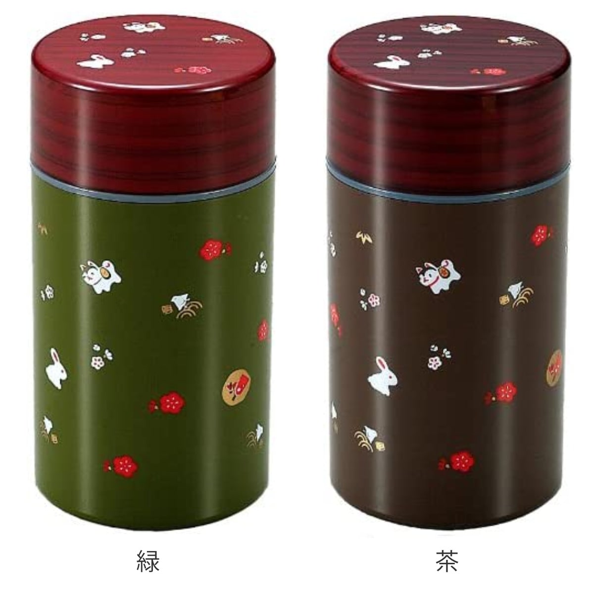 シンプルな仕様で使いやすい、樹脂製の茶筒400mlです。中蓋付きで使いやすく、茶葉や紅茶、コーヒー粉などを湿気や直射日光から守って美味しく保存できます。散りばめられた小さな狛犬や兎の和柄がかわいく、ほっこりと落ち着くお茶の時間を演出します。