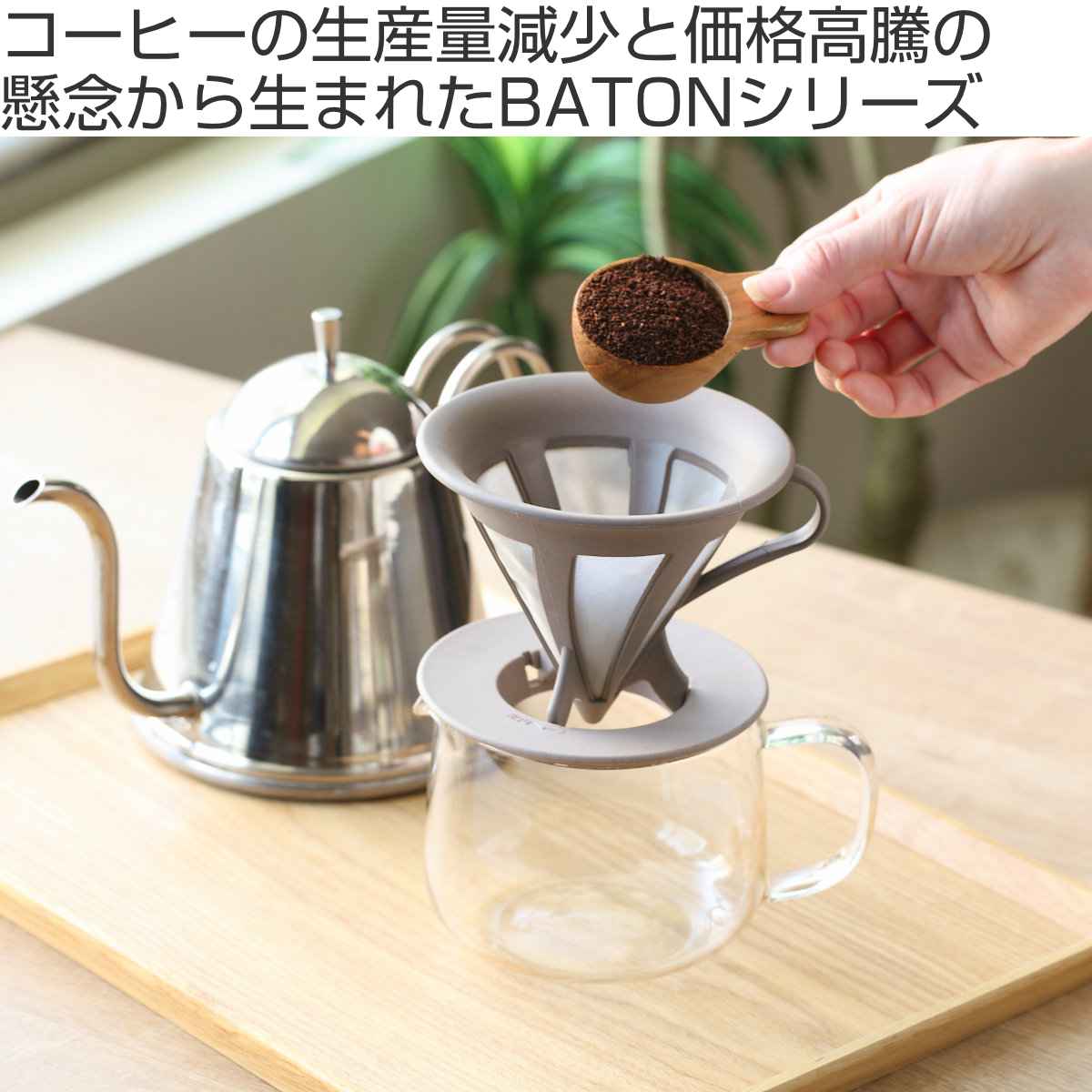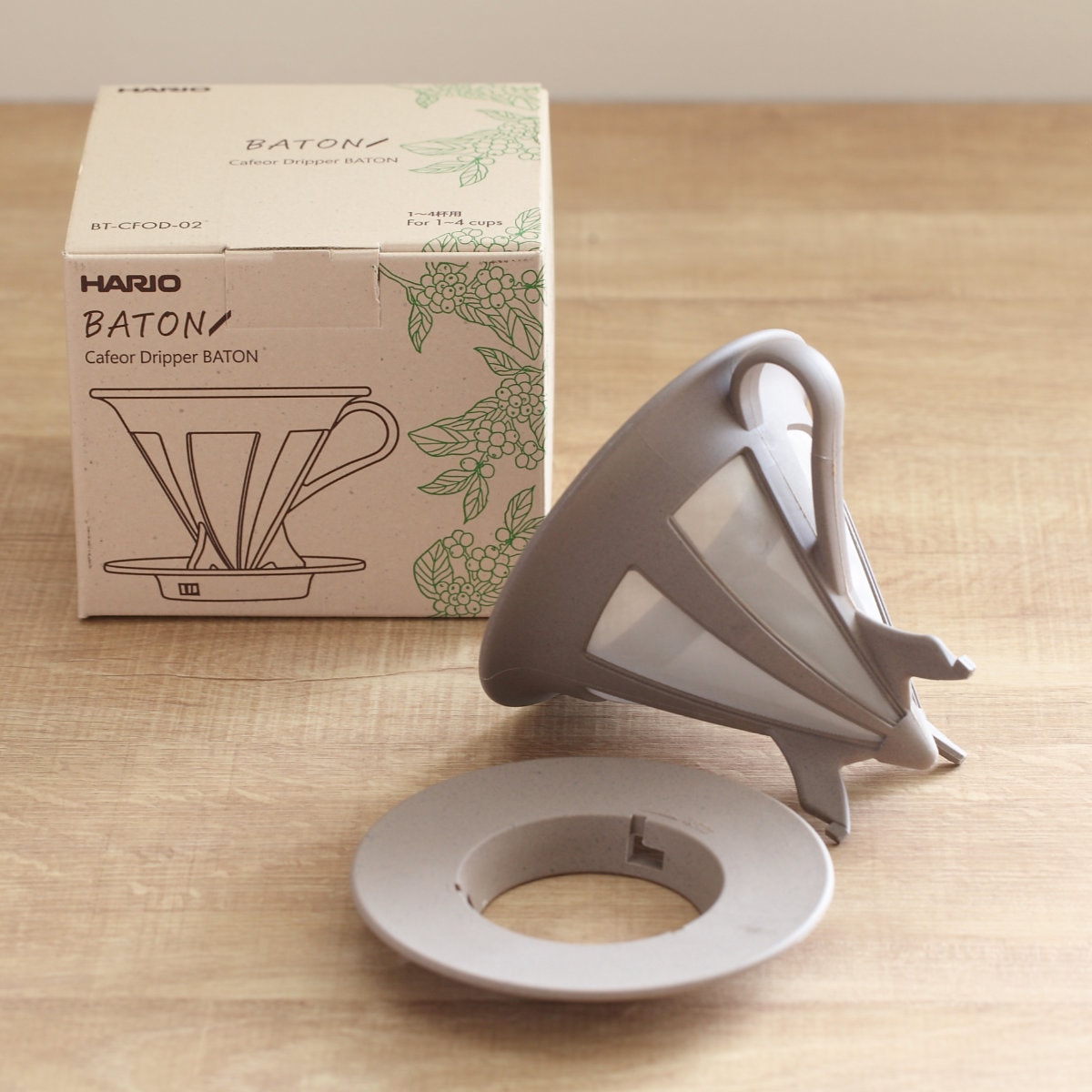 「BATON(バトン)」シリーズは、廃棄してしまう抽出後のコーヒー粉などの天然系素材を使用し、プラスチックの使用量を約50%削減しました。また、ペーパーを使わないドリッパーなど、環境に配慮した製品のシリーズです。はるか昔から繋がれてきたバトンを、これからもずっと、未来へ繋いでいきたいと願っています。